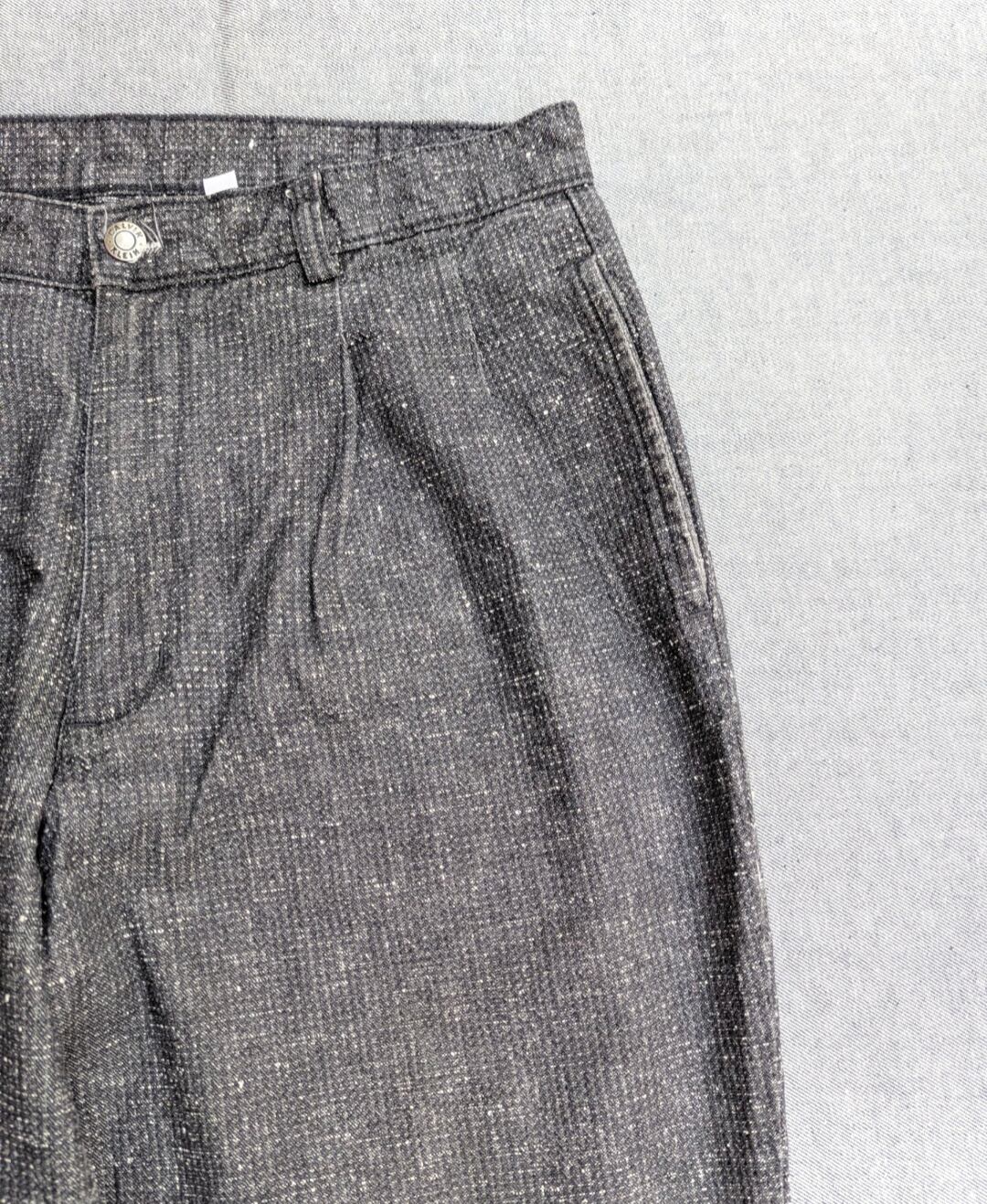 ブラック? グレー?の変わった独自な織りで黒シャンのようなパンツ
