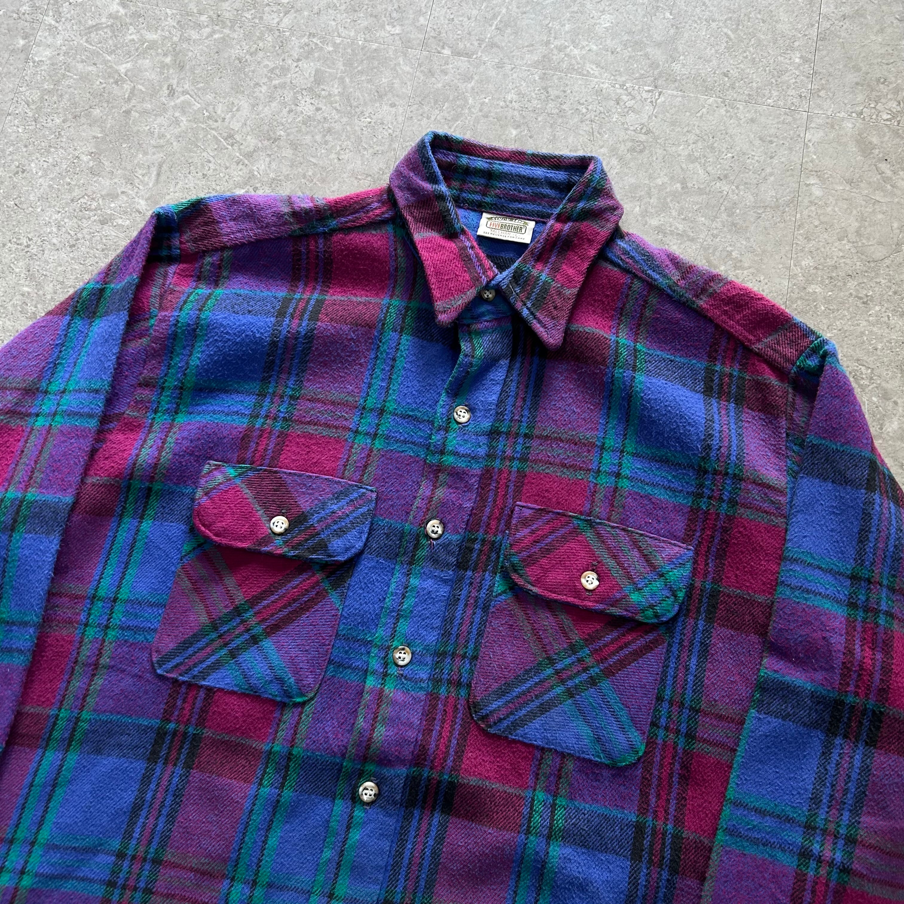 90s FIVE BROTHER heavy flannel shirt