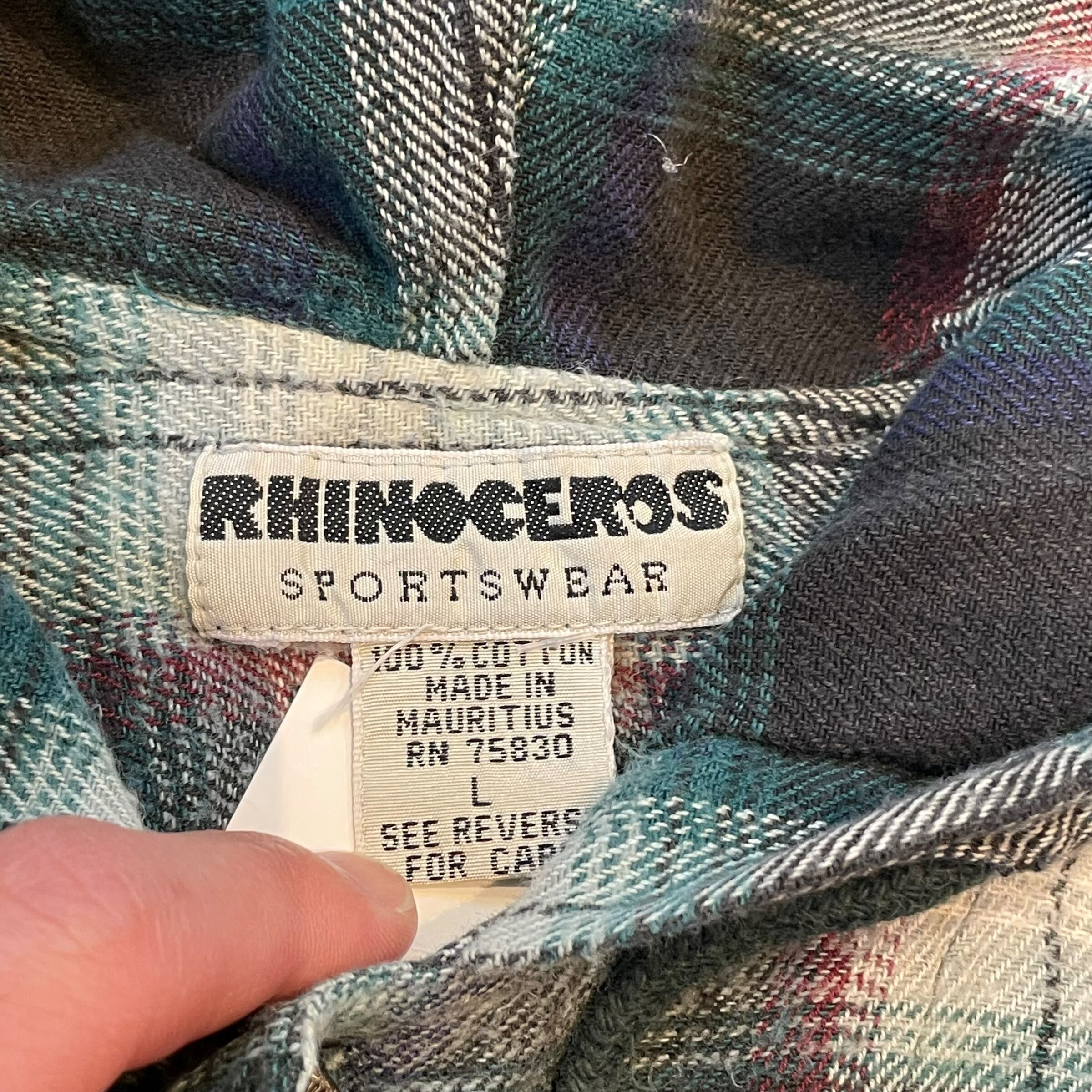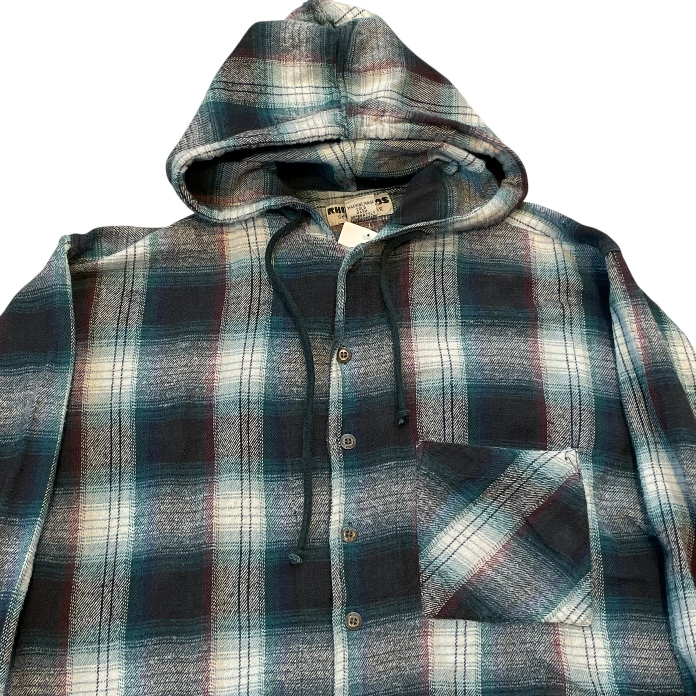 90s RHINOCEROS ombre check heavynel hood shirt