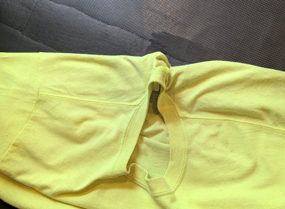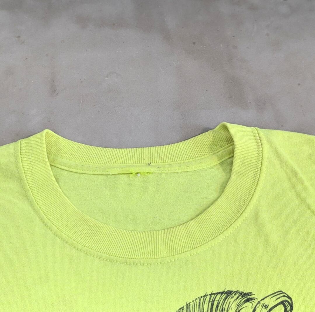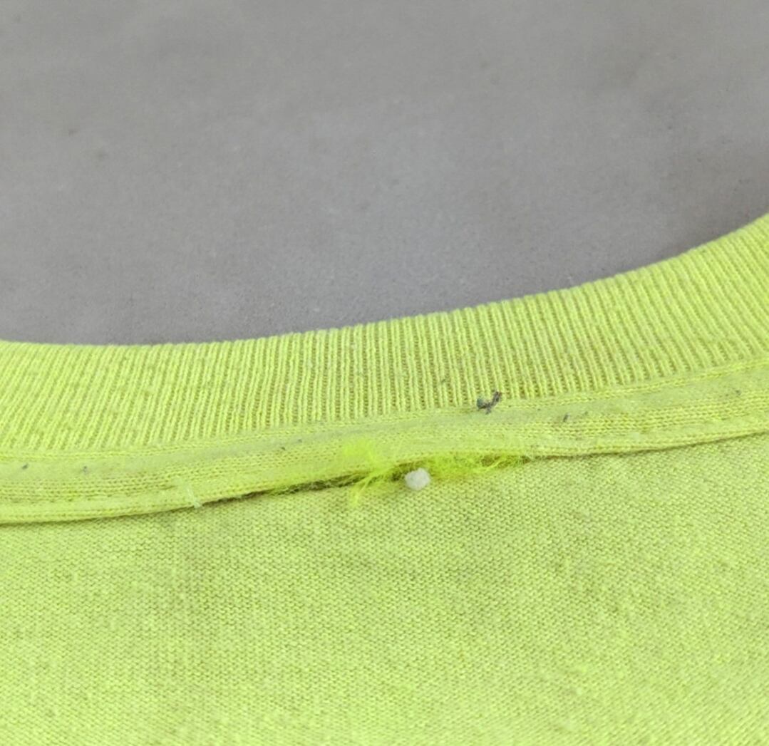 状態詳細:使用感、全体的に汚れ、染み、擦れ、ネックホツレ、タグ欠損、見えづらいですが、肩ヤケ。