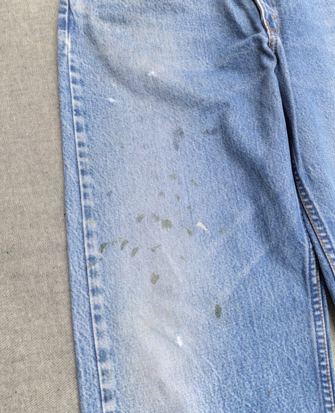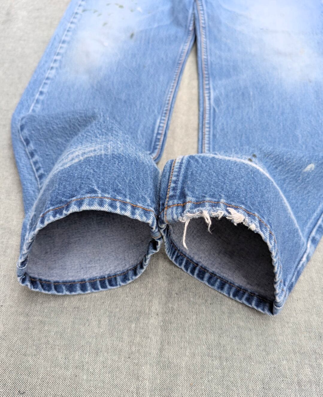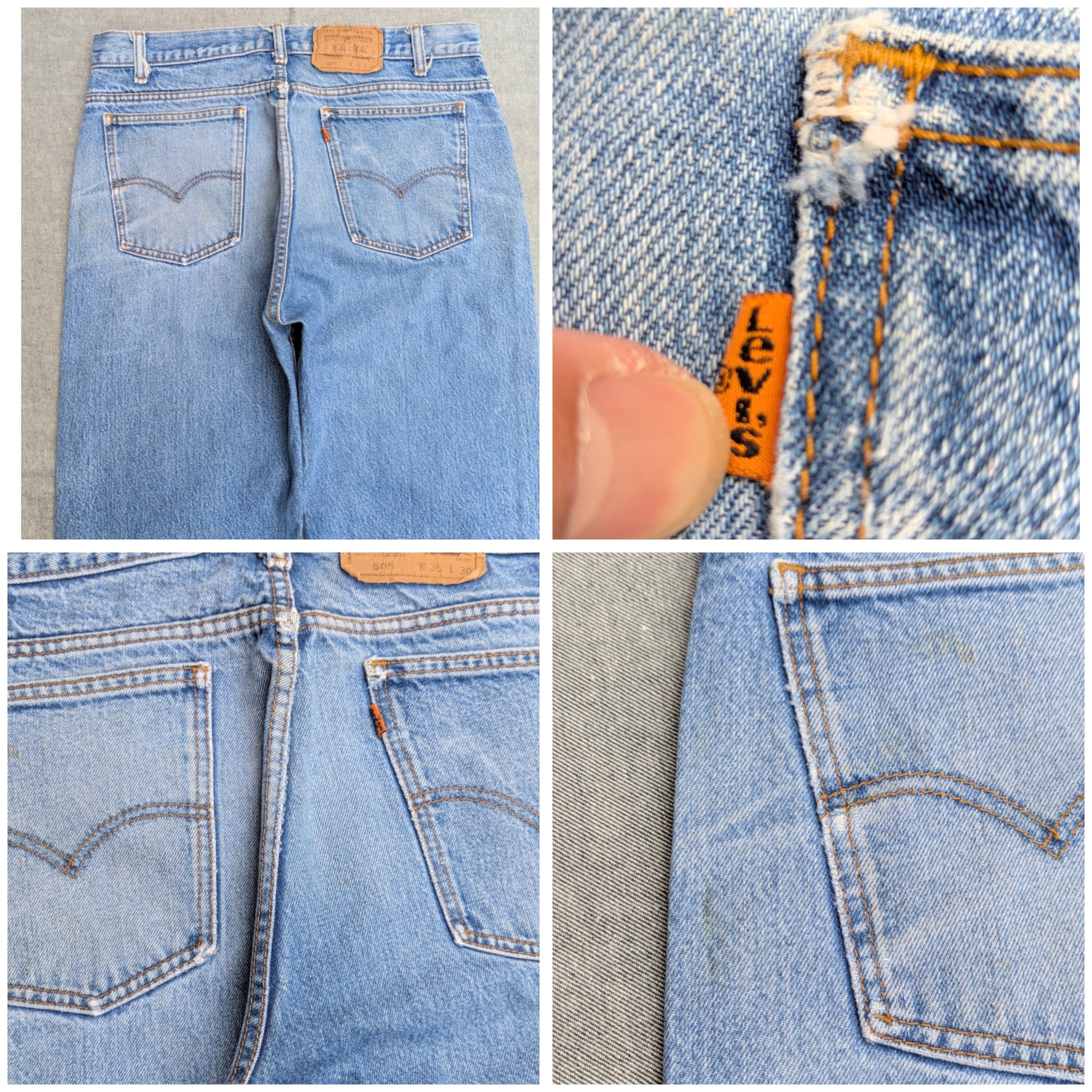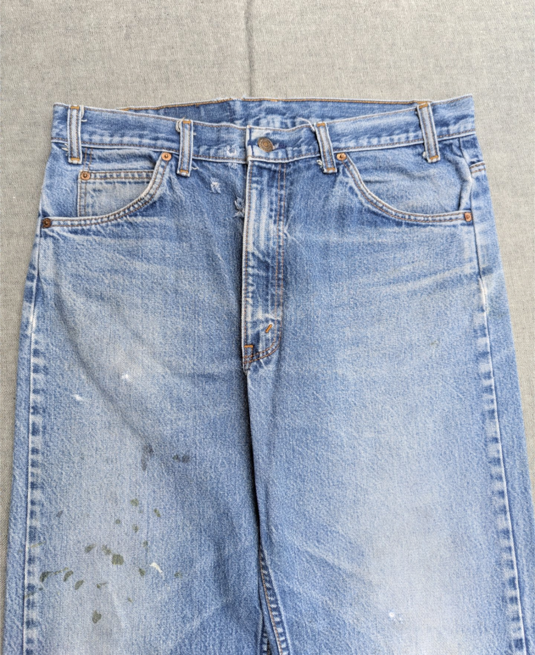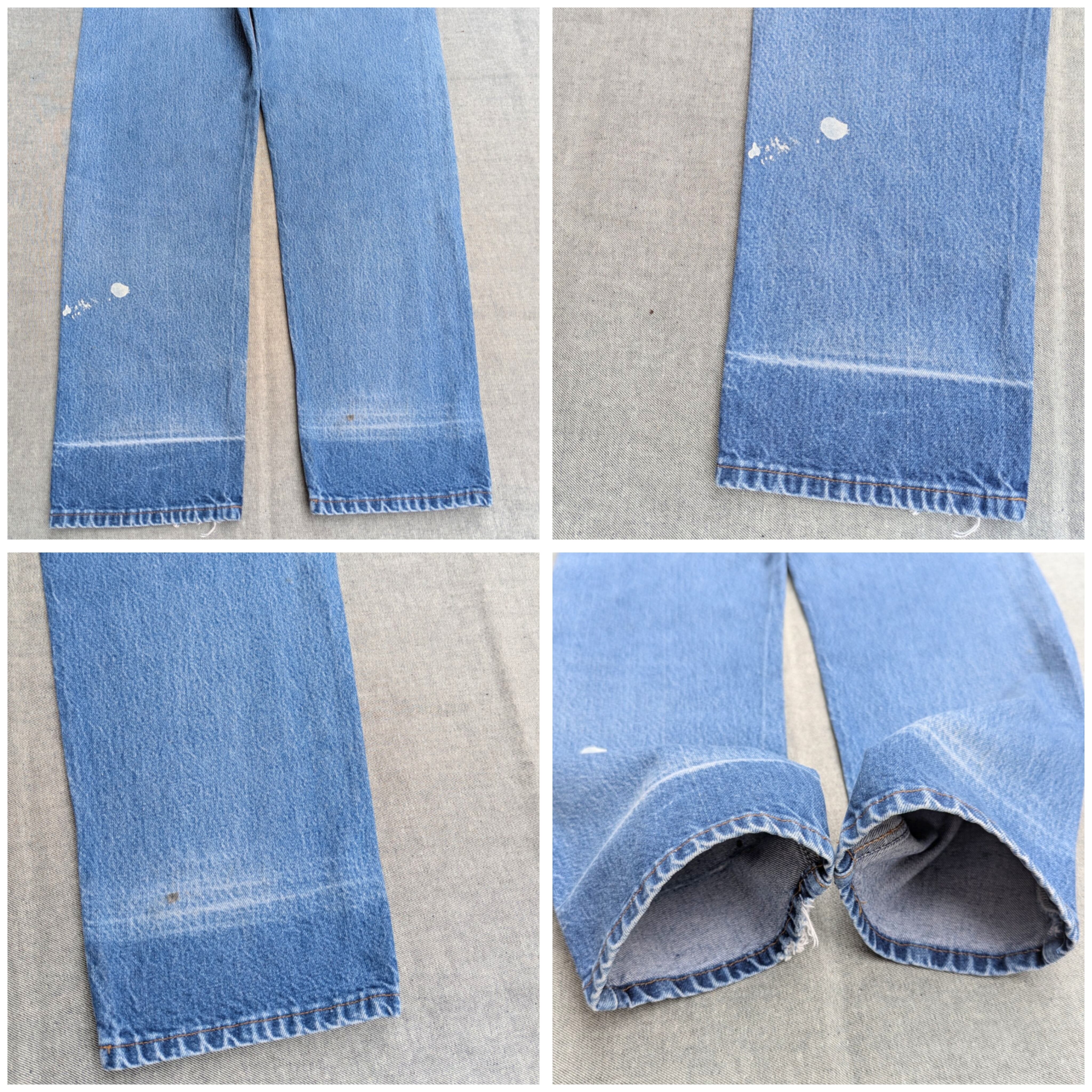 状態詳細:使用感、ダメージ、穴、擦れ、汚れ、染み、ペンキ飛び、ベルトループ上(紙パッチ付近)擦れ。