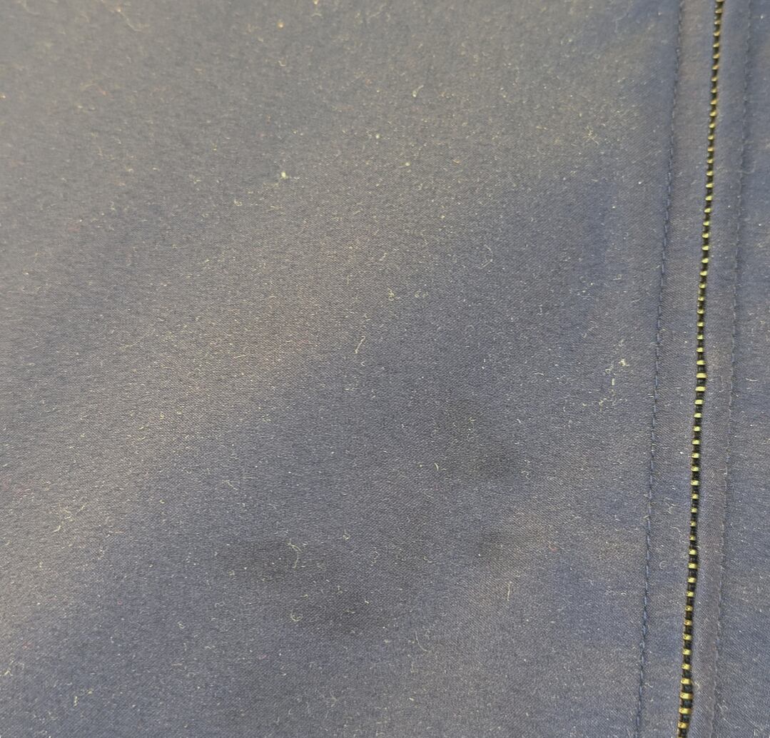 ポリエステル生地で全体的に細かなゴミが付着。