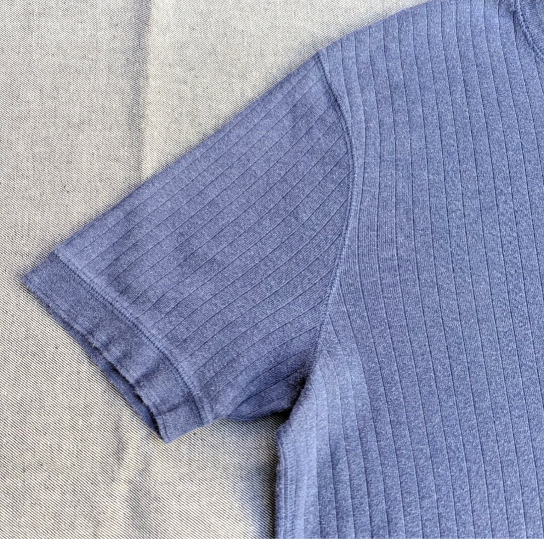 古いスウェット類のリブやアンダーウェアなどで見られるる『針抜き』と呼ばれる手法で編まれたファブリックを使用した変わり種です。