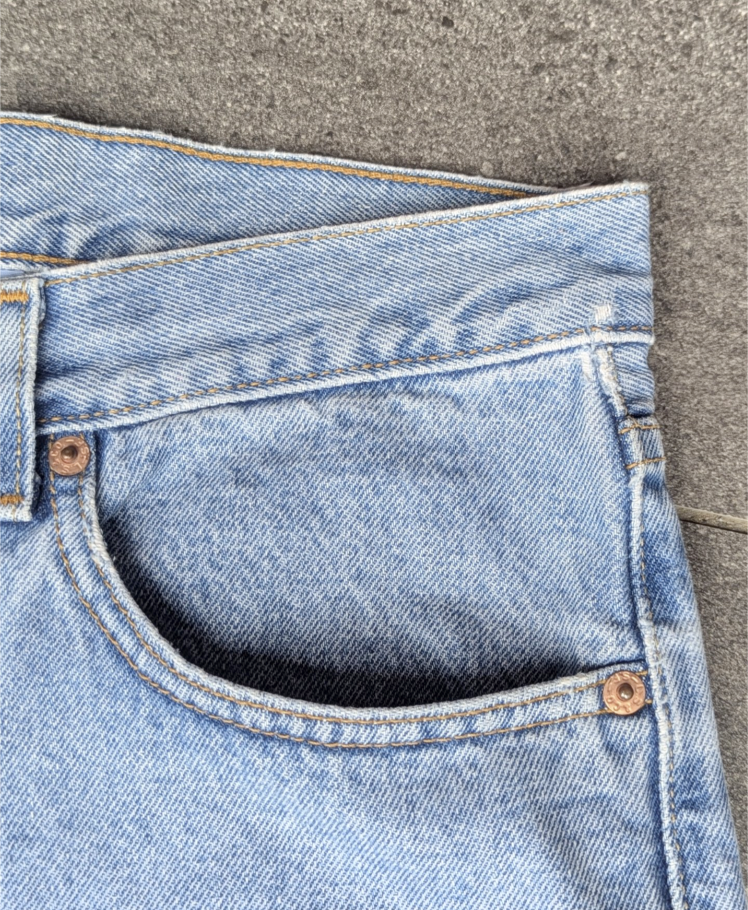 丁度良い色落ち、ユッタリとしたサイジングで、膝丈位で履ける汎用性高い1本です。