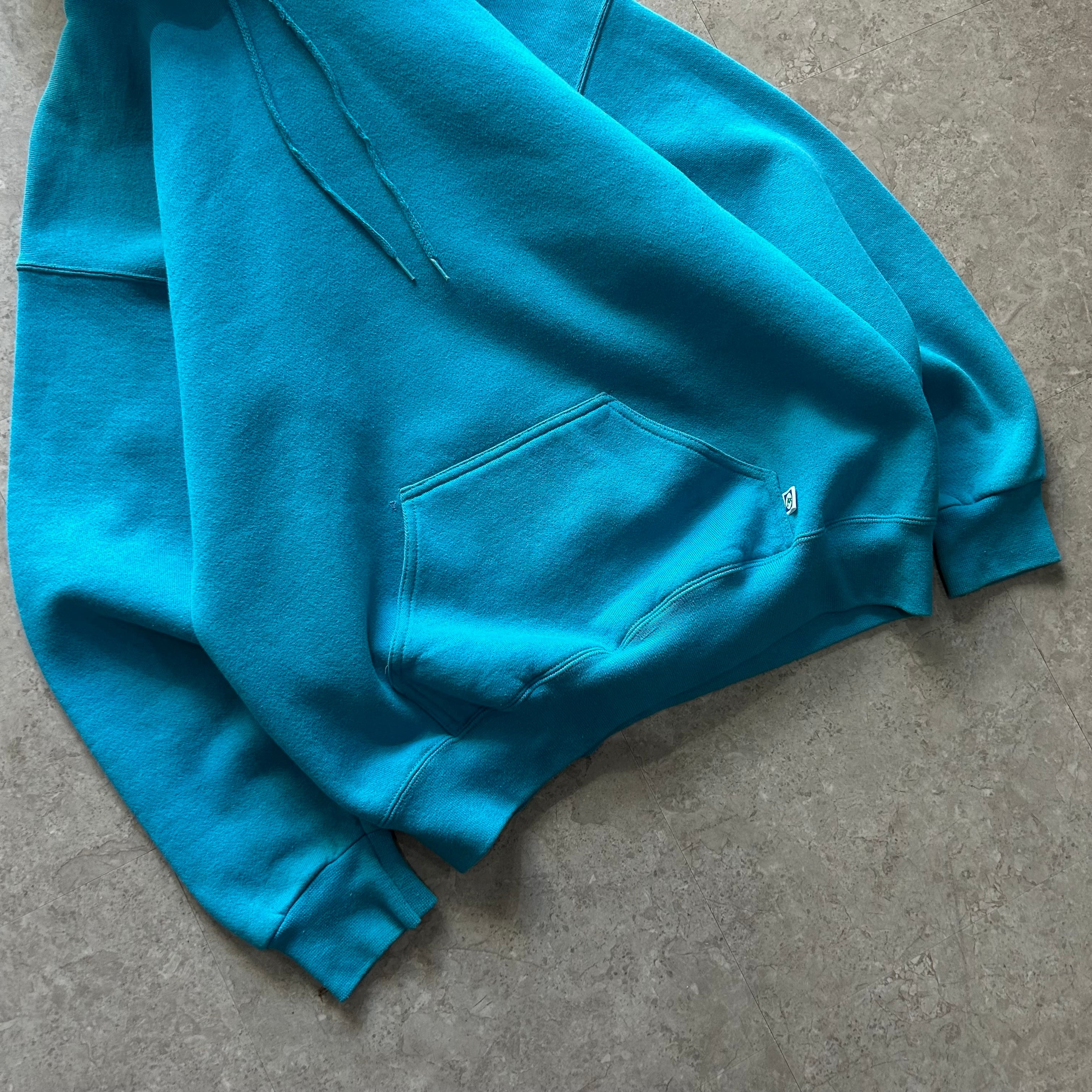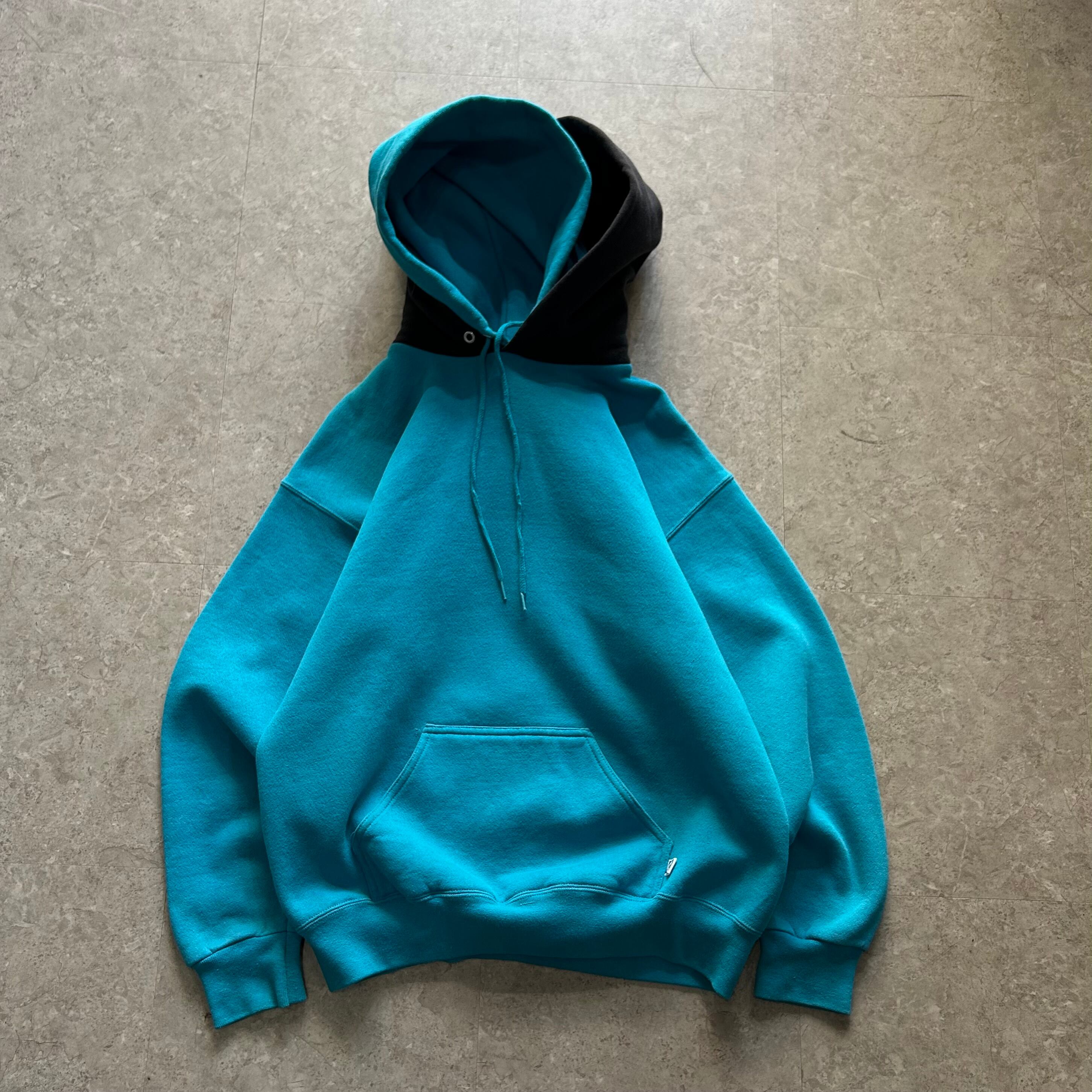 90s Discus Athletic "turquoise × black" double hoodie【仙台店】
