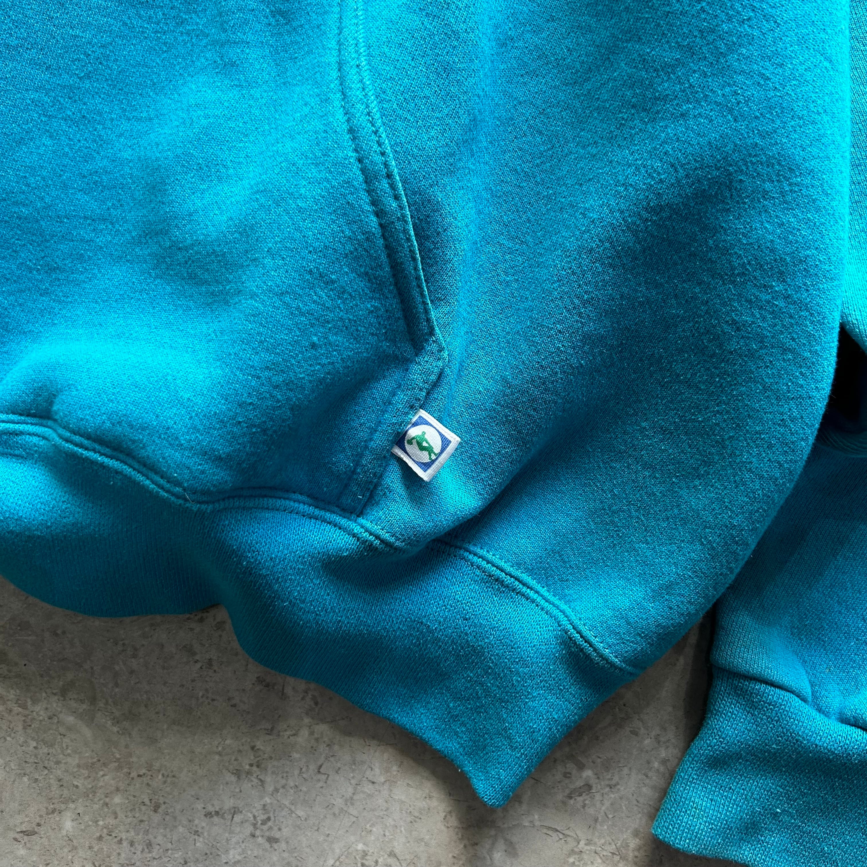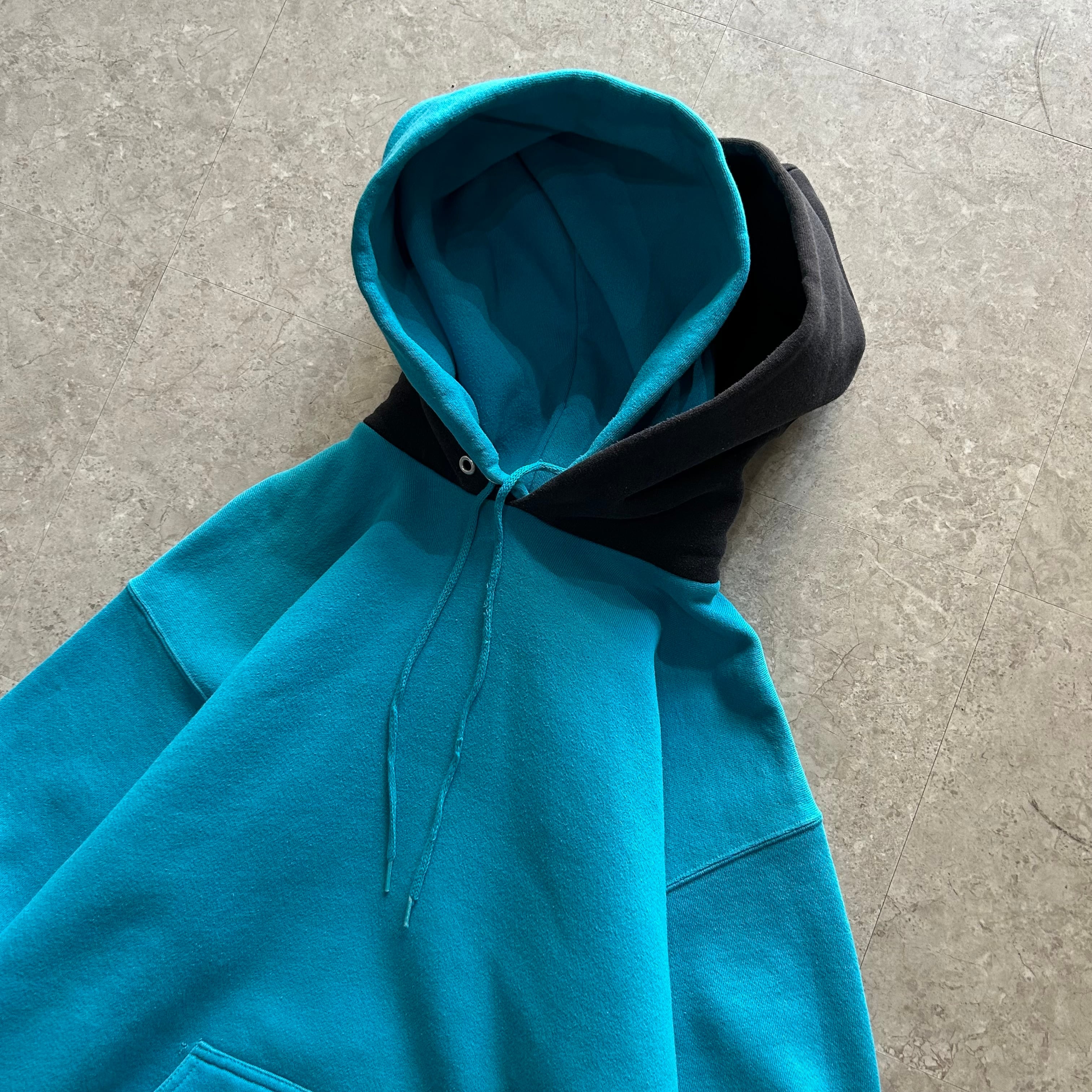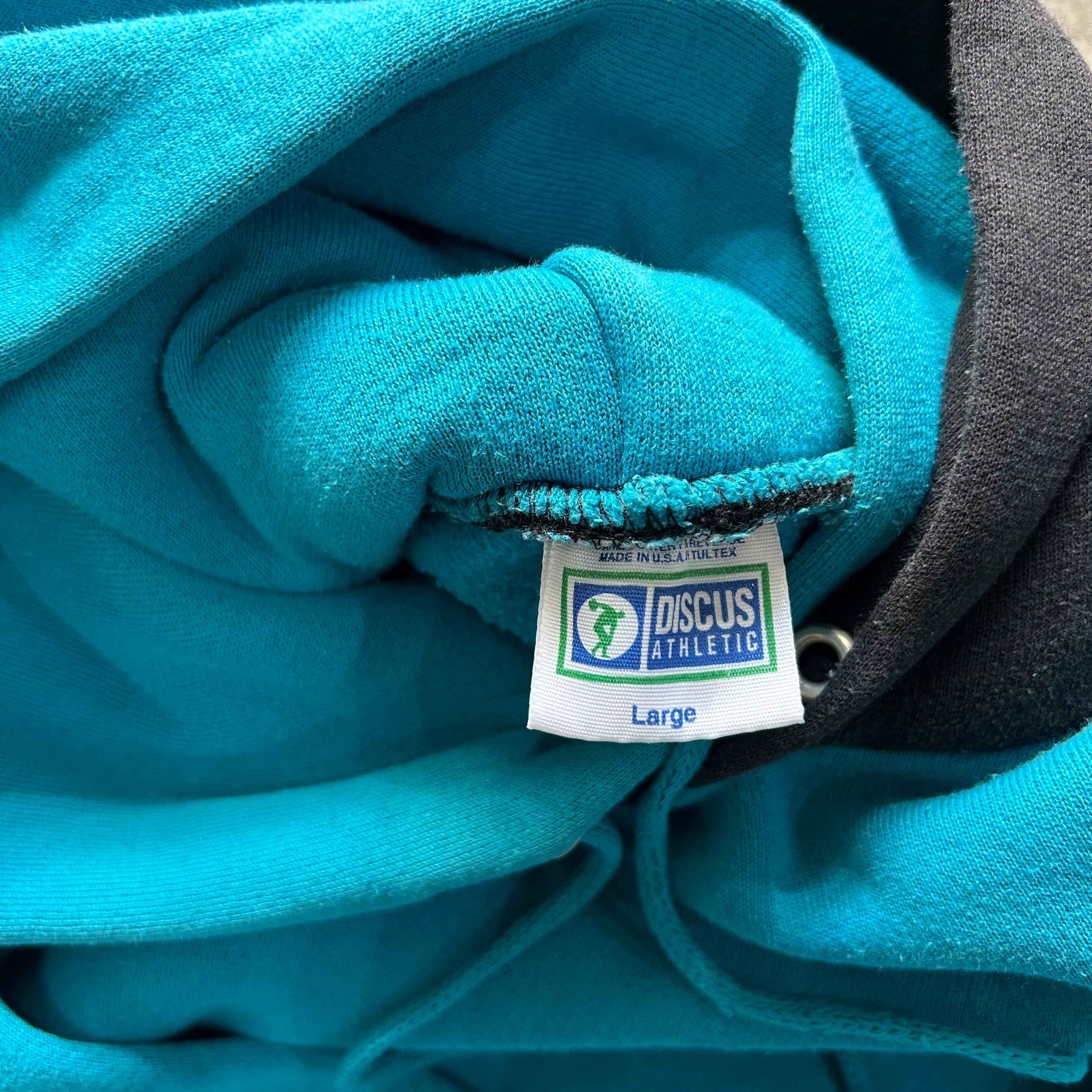 90s Discus Athletic "turquoise × black" double hoodie