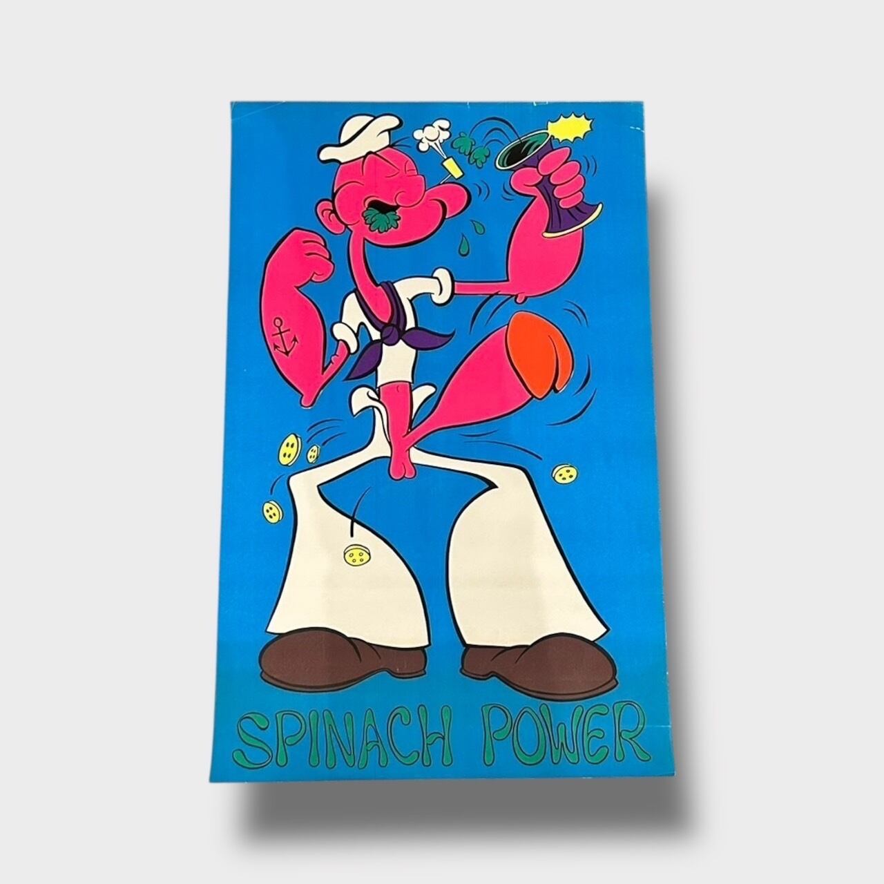 Special!! Deadstock!! 1960s〜1970s Popeye parody "SPINACH POWER" Black Light Poster