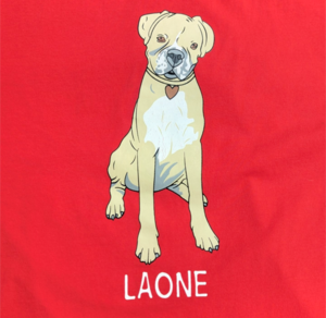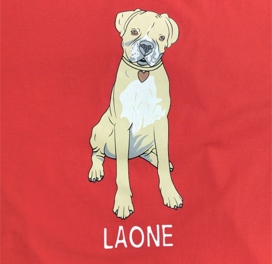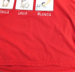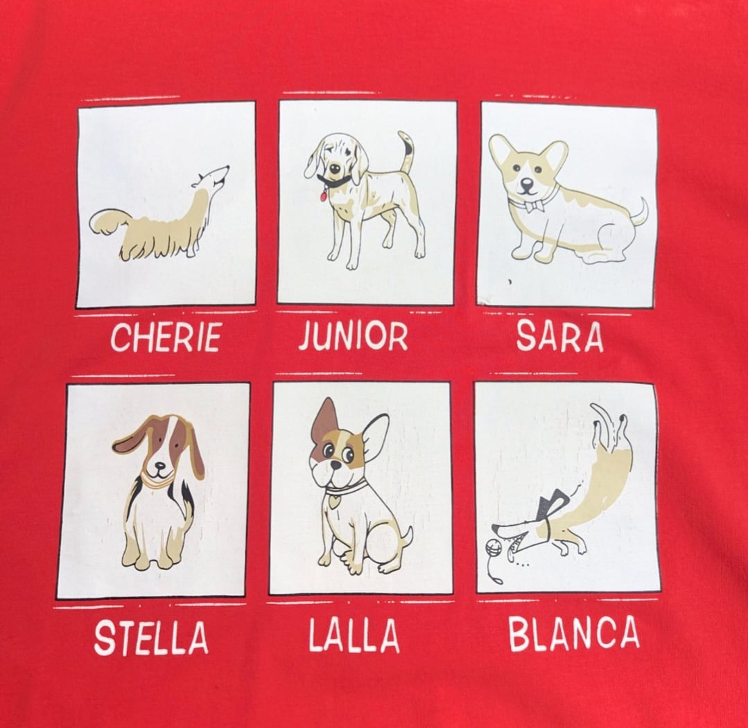 フロントは6匹のドッグ達で、それぞれにネーミングがされている愛らしいプリント。