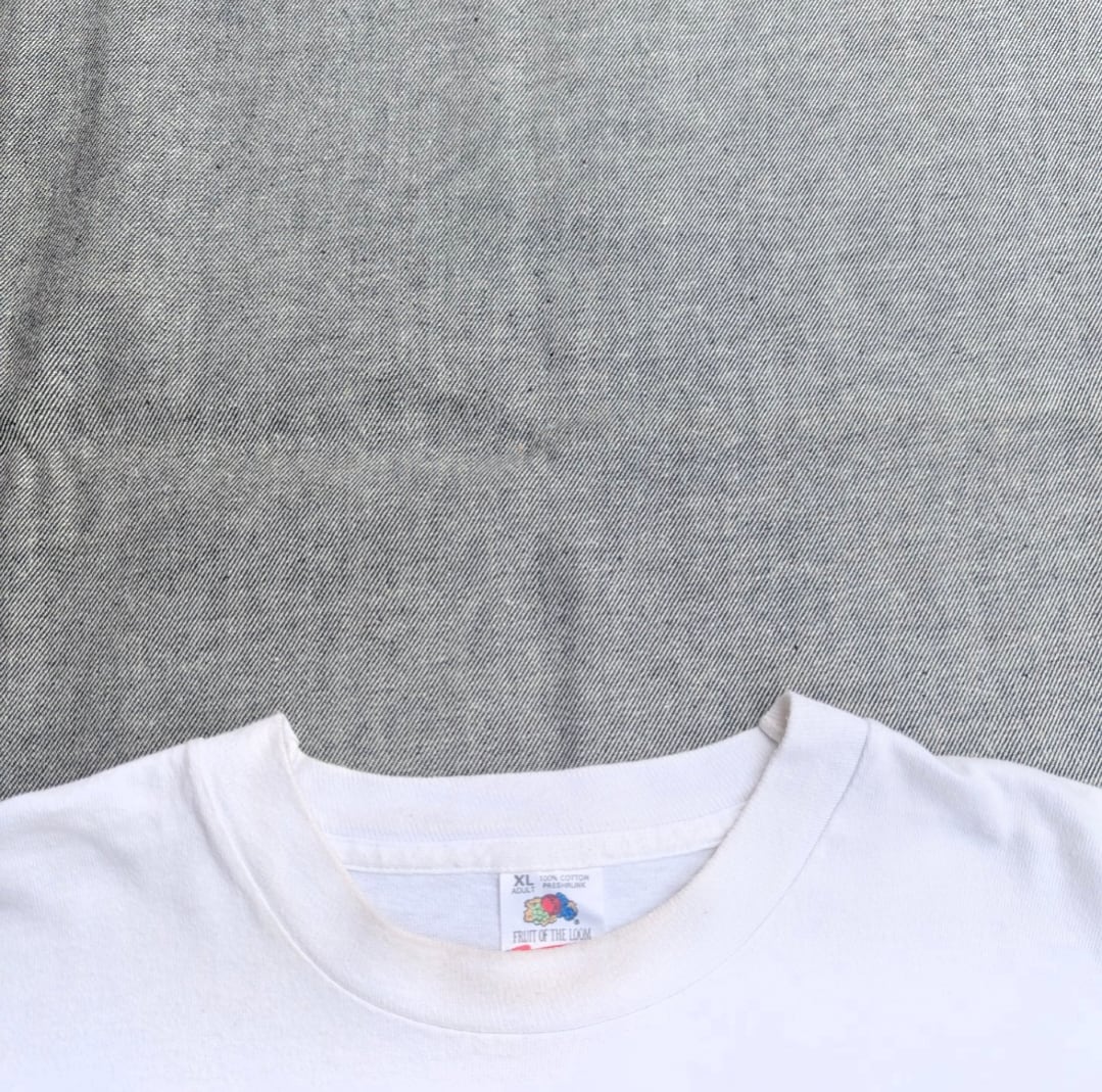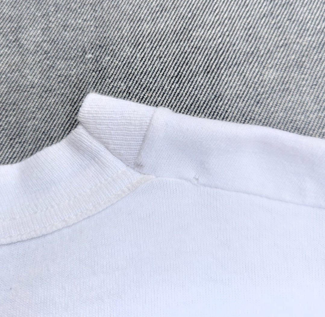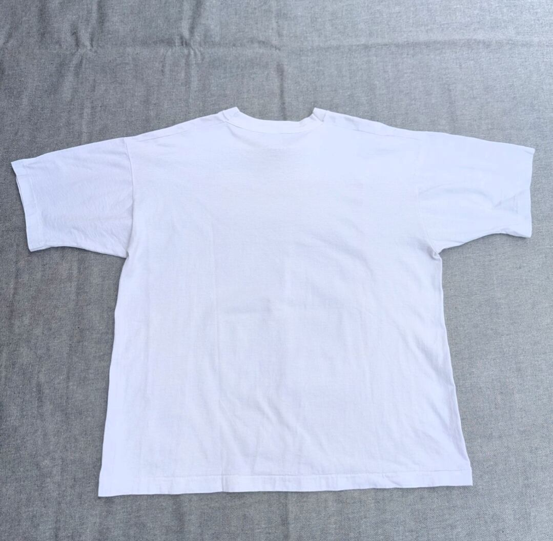 状態詳細:使用可、裾リサイズ、プリント擦れ、ネック周り汚れ、小傷、薄汚れ。