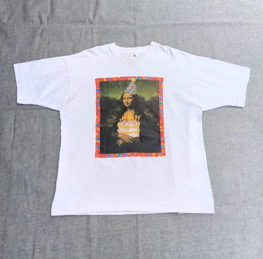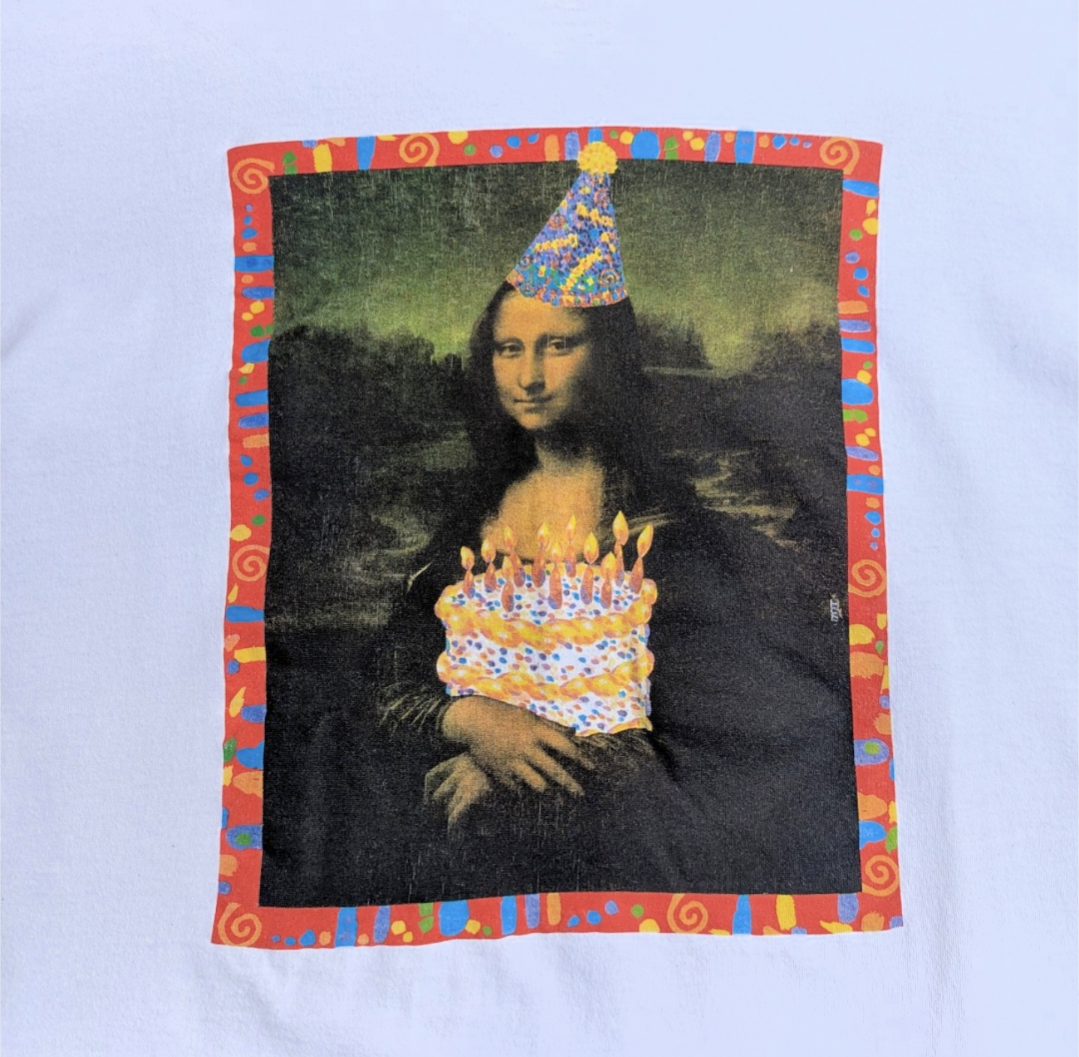 90s mona lisa " happy birthday " パロディ tee 小岩店