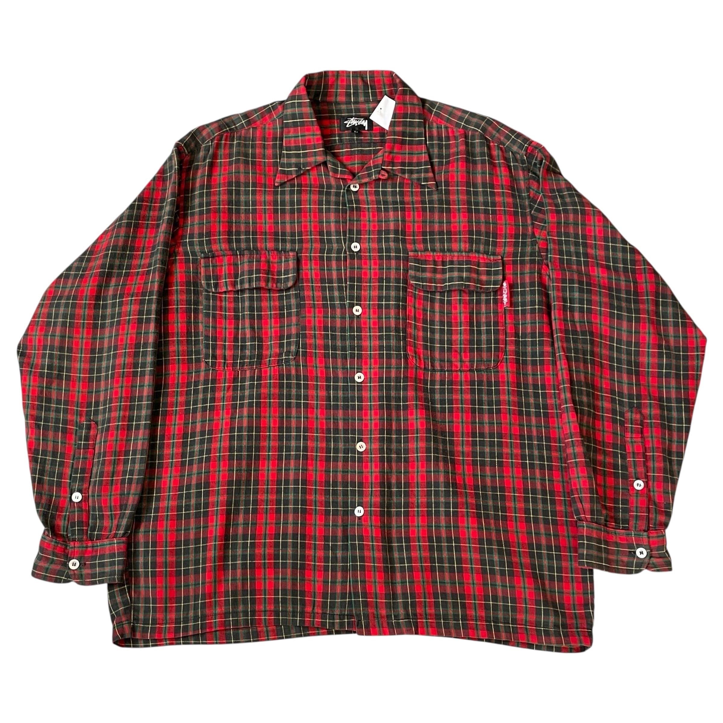 80s〜90s STUSSY "Red × Green check" cotton board shirt