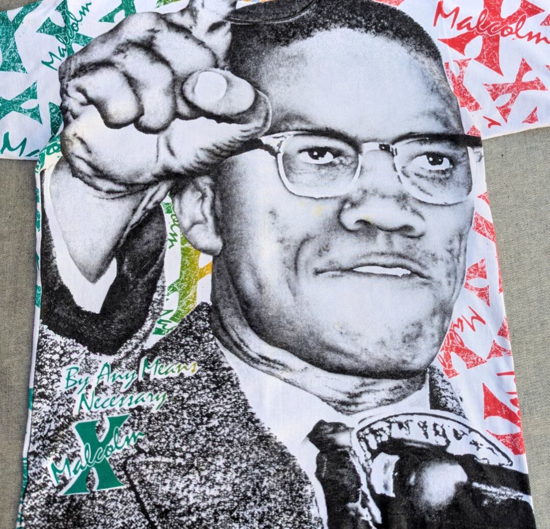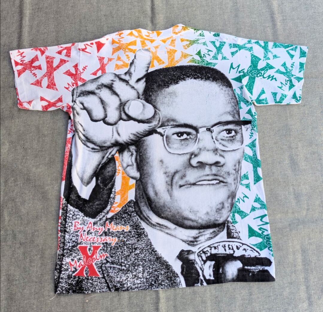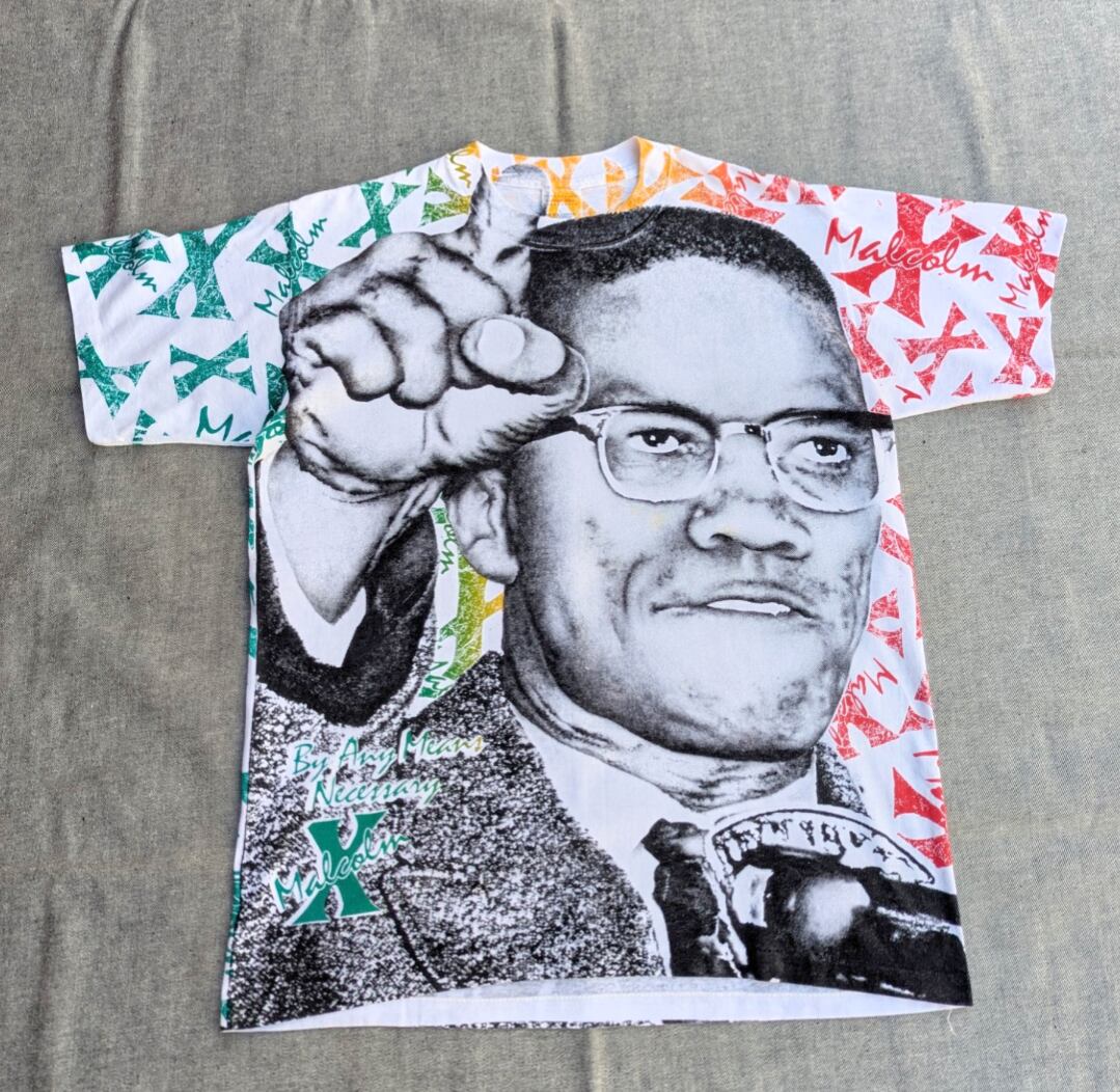 90s malcom x oll over print tee 小岩店