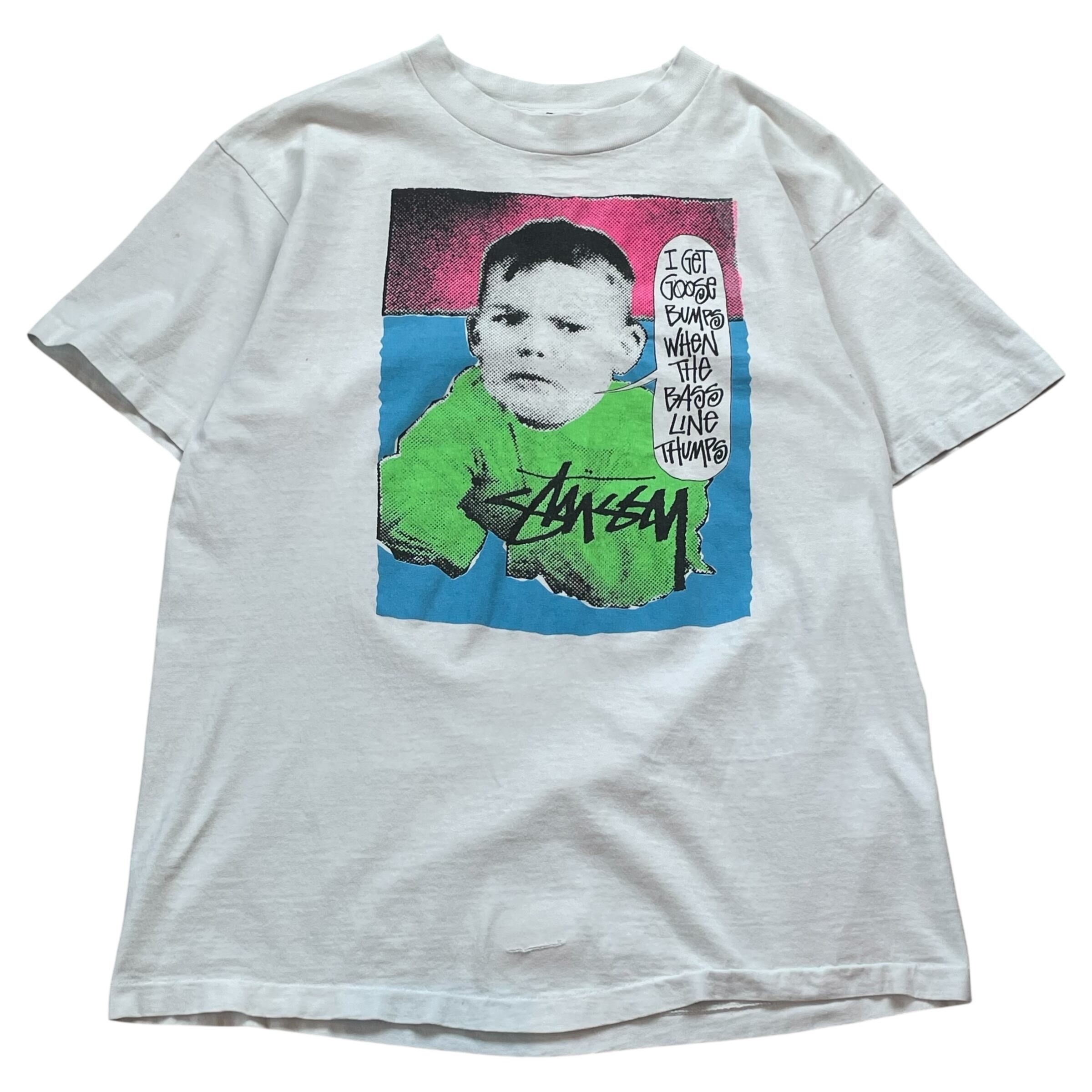 Super Special!!!! 1980s Stussy "satin tag" "Baby Photo" T-shirt White