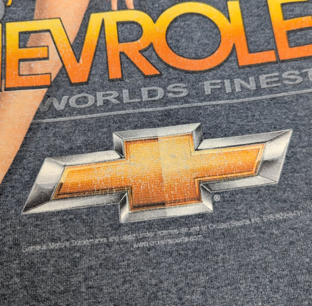 構図は、シボレーのマークに、アメリカン クラシックガールがプリントされたtee,