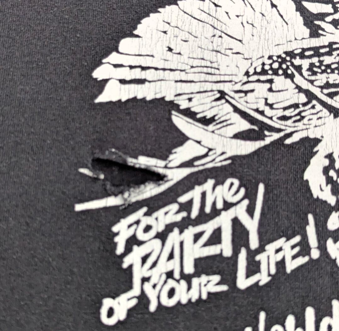 状態詳細:使用感、褪色、プリント割れ、擦れ、穴。