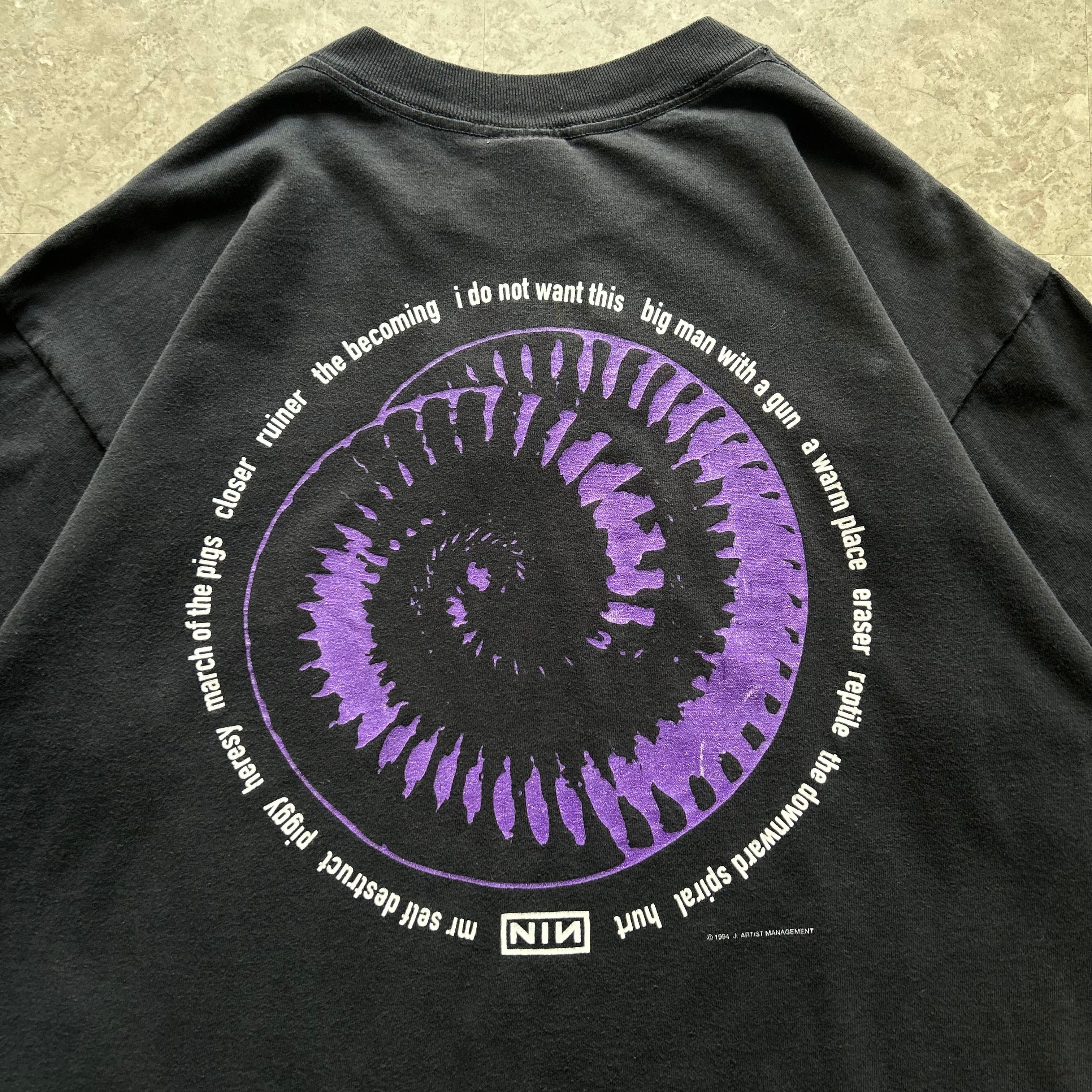 1994s NINE INCH NAILS "The Downward Spiral" embroidery logo T-shirt