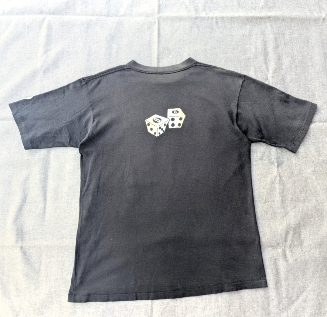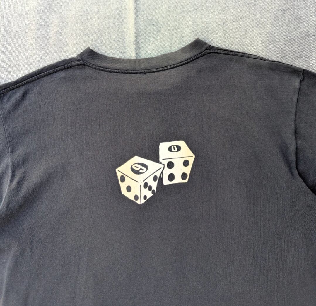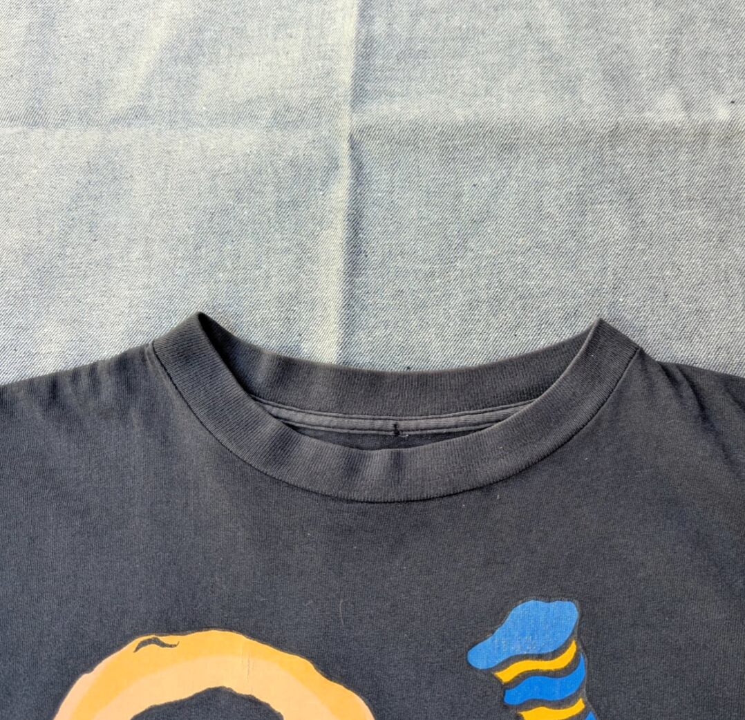 状態詳細:使用感、褪色、薄汚れ、プリント割れ、ピンホール。タグ欠損。