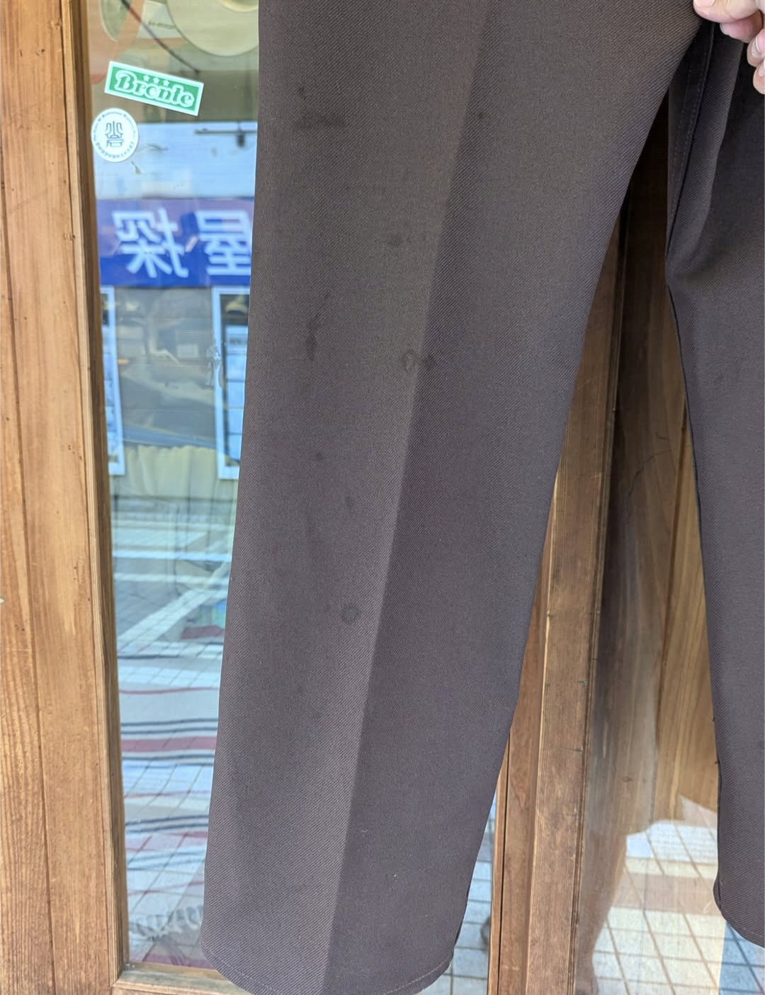 シワになりにくいポリエステル生地で仕立てられたこちらは、『STA-PREST(スタプレスト)』の表記やタグは見られませんが同等のスペックを持つ一本。