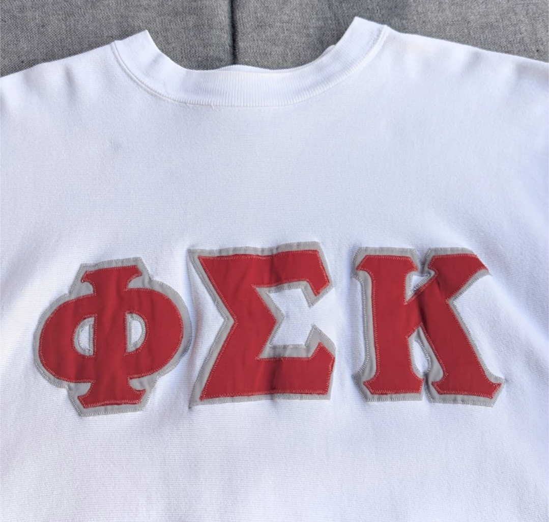 白ボディにφΣΚのギリシア文字ワッペン