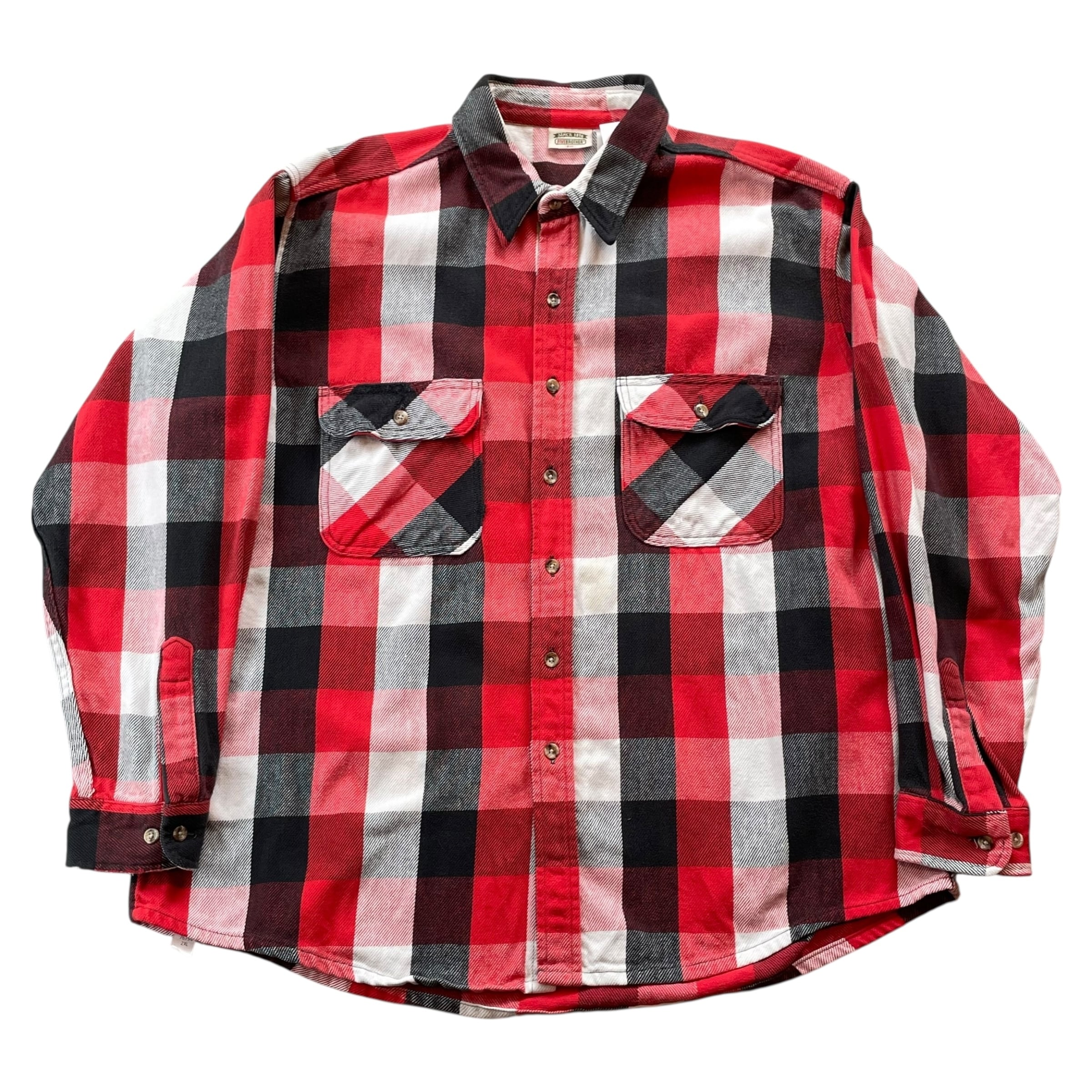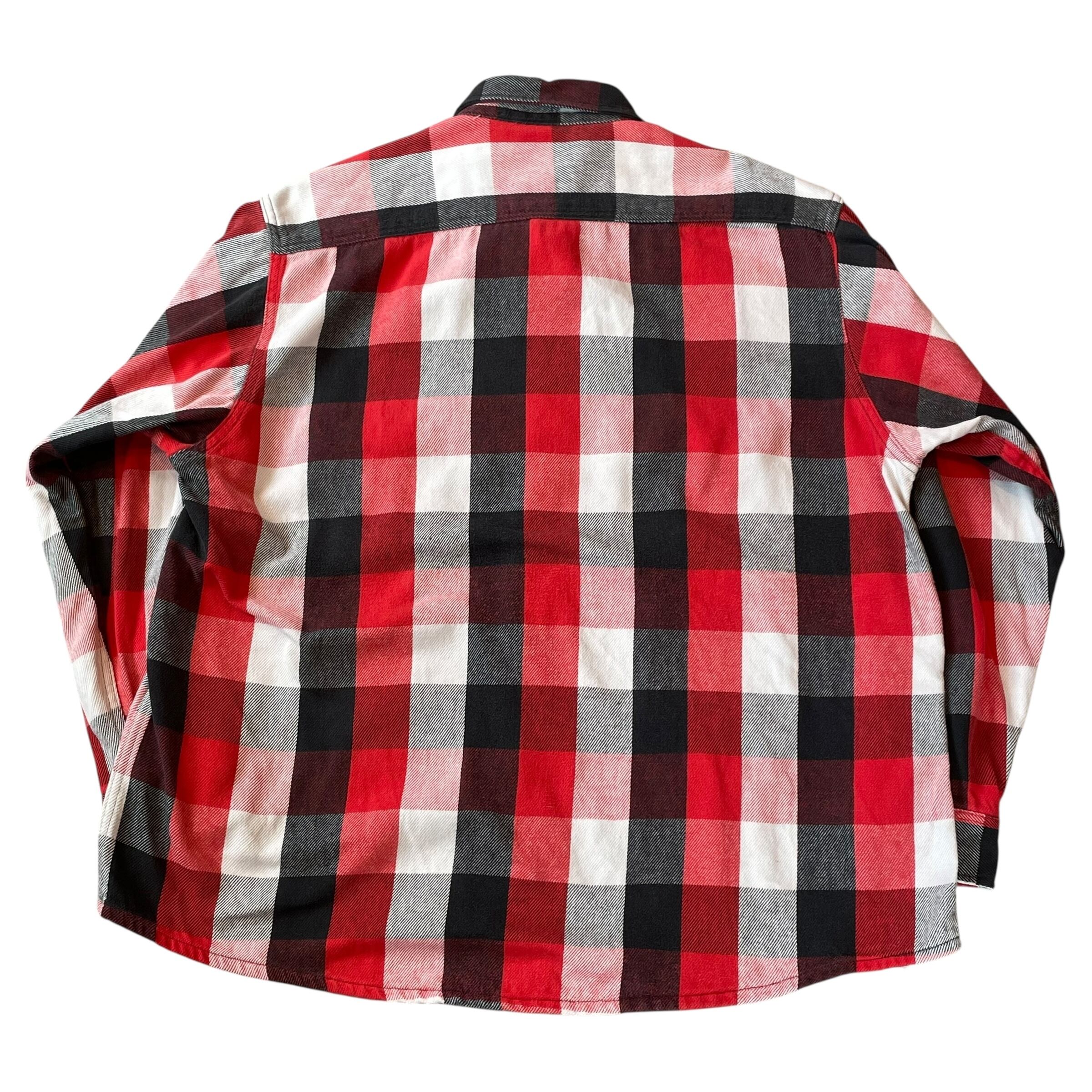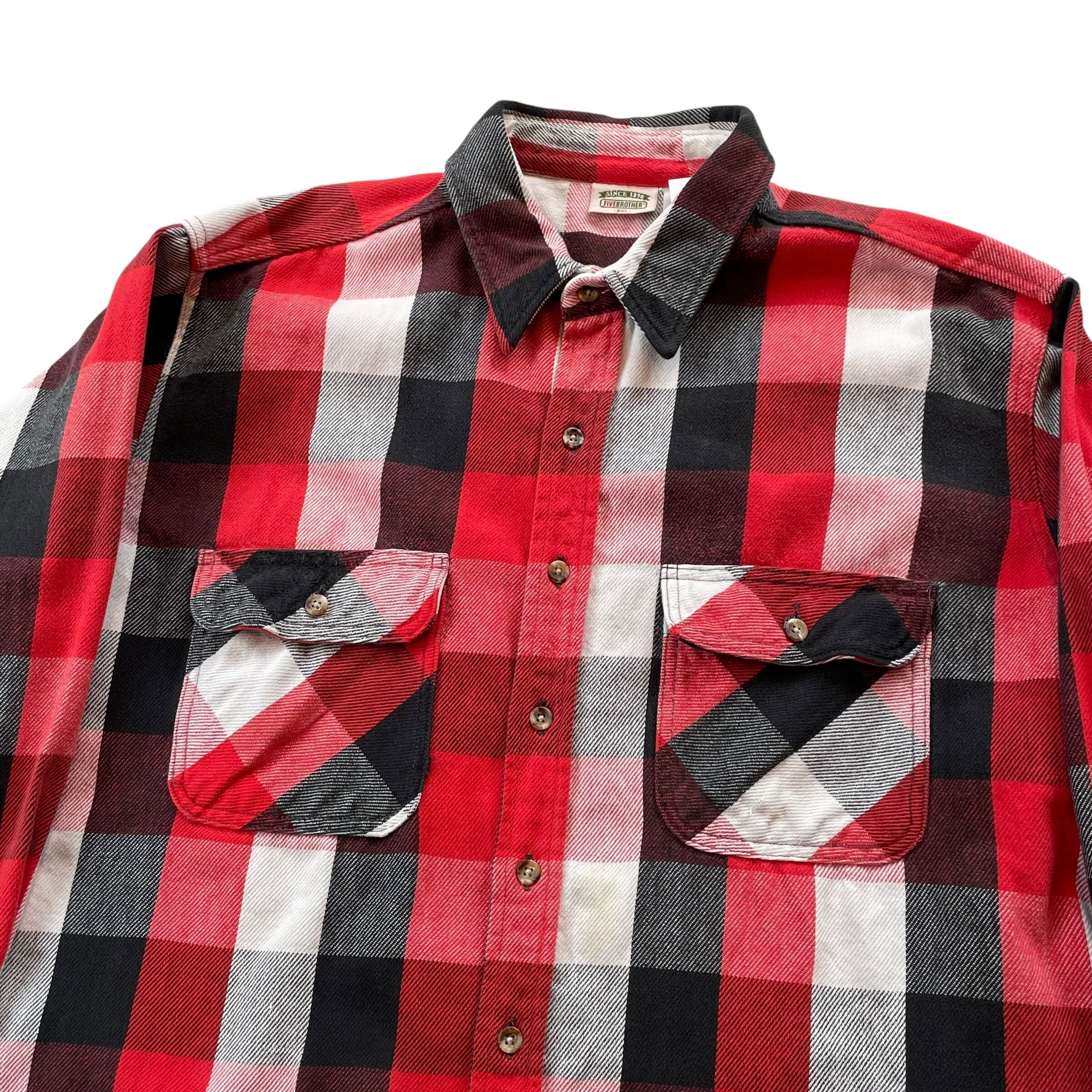 90s FIVE BROTHER "Red×Black×White" heavy flannel check shirt