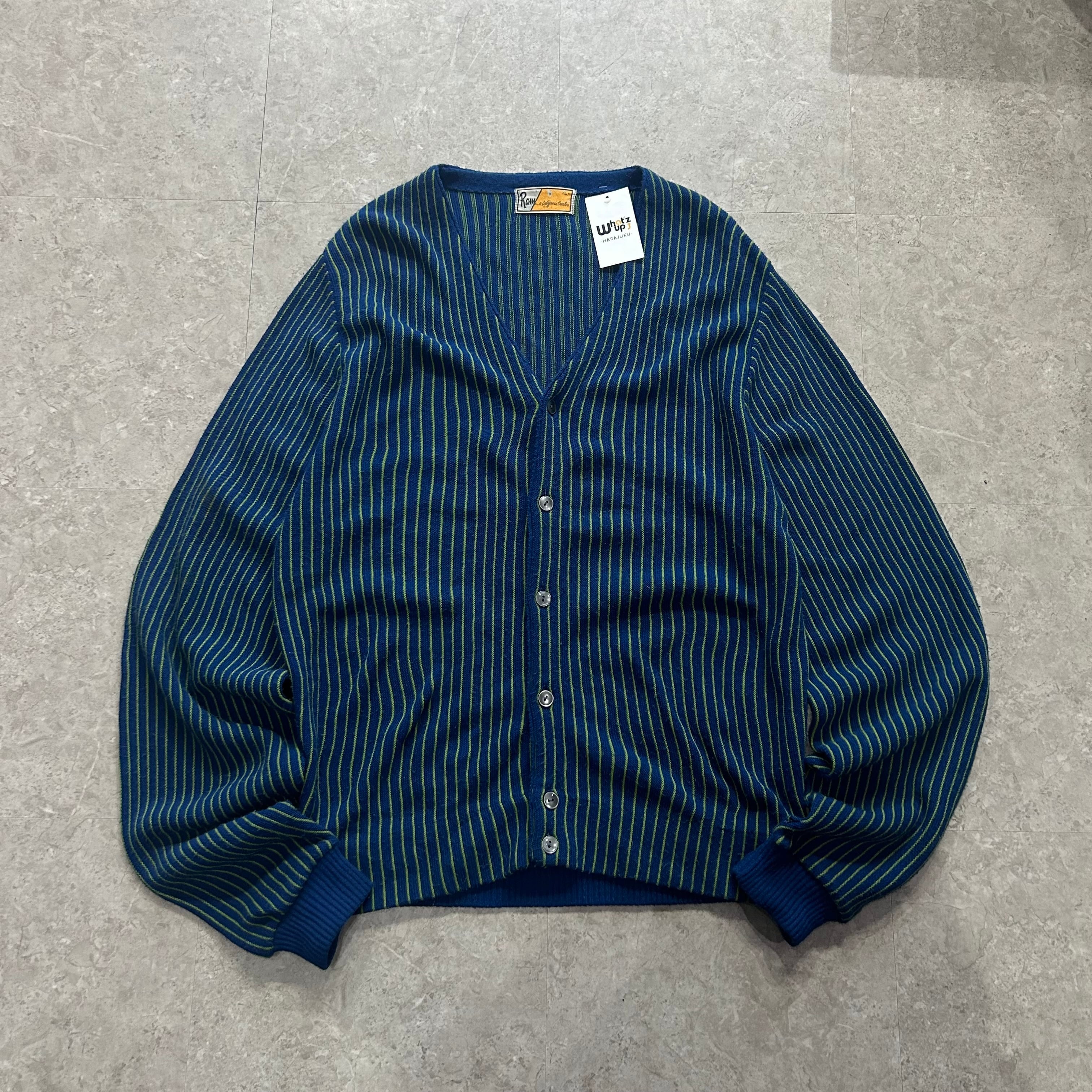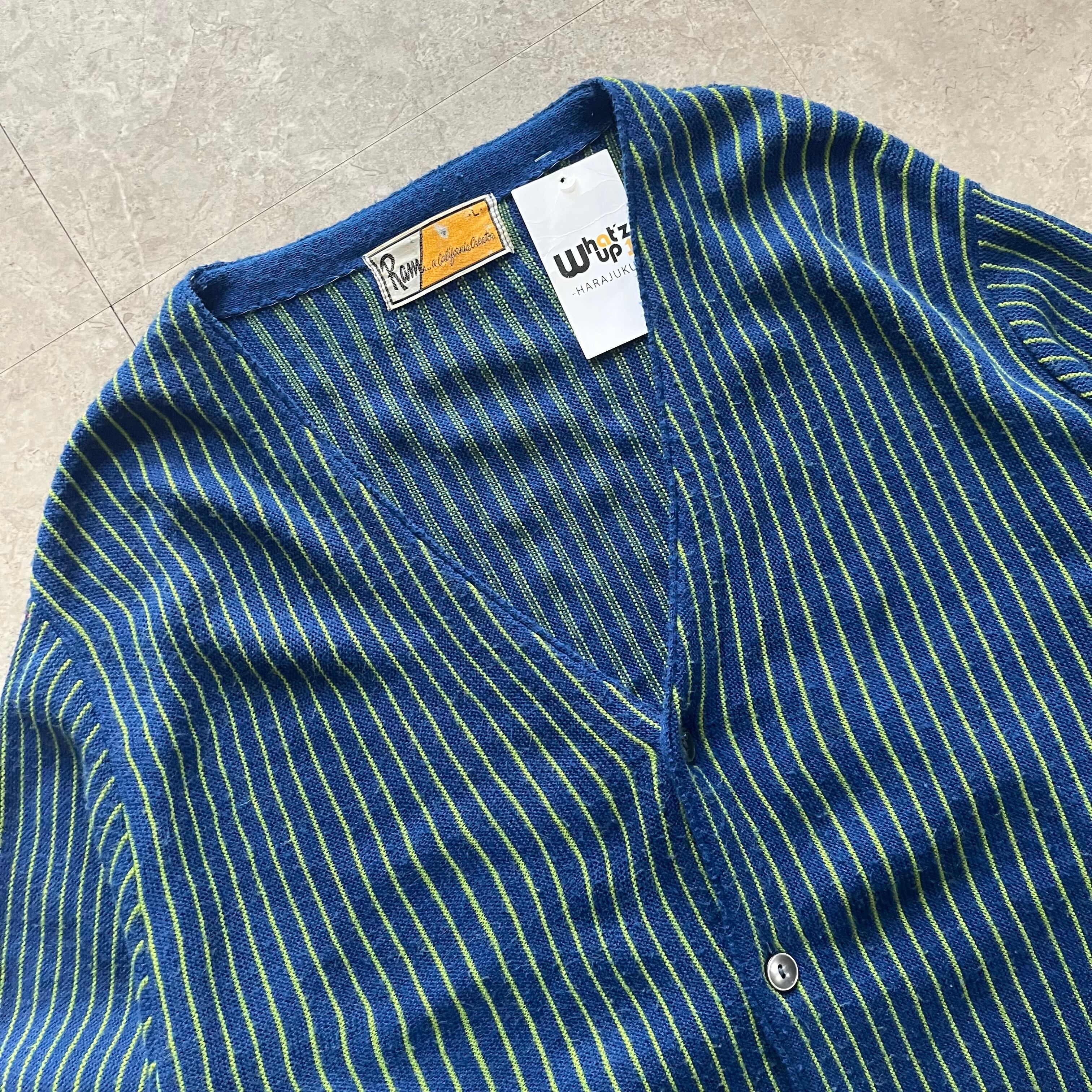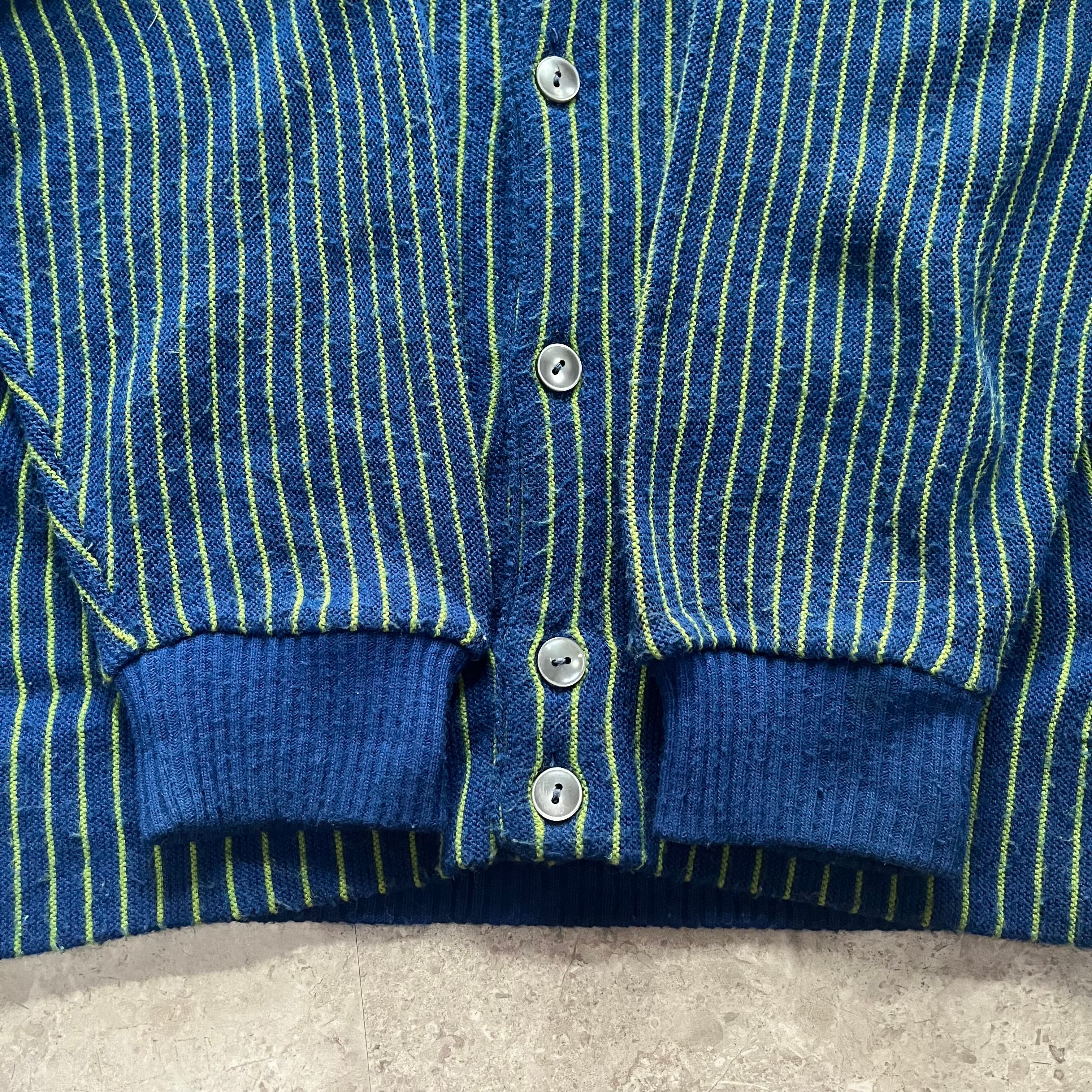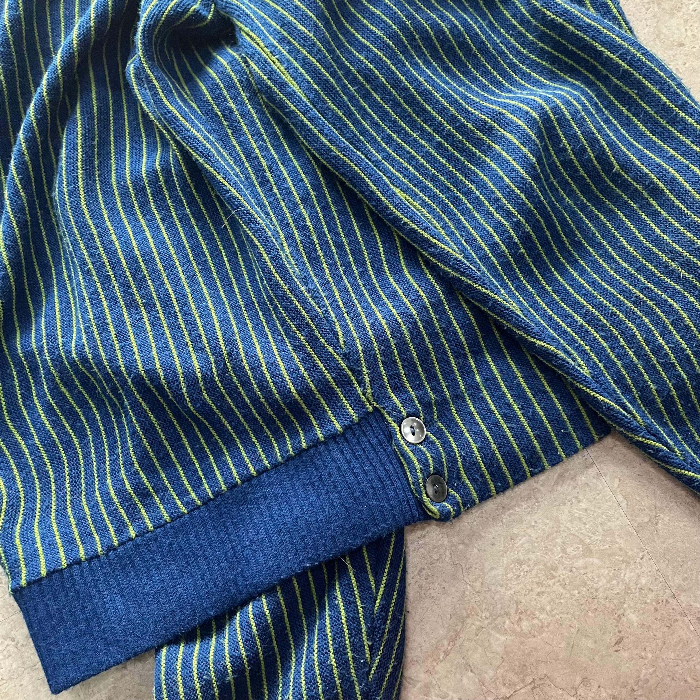 70s〜Ram a California Creator " blue/green " stripe knit cardigan