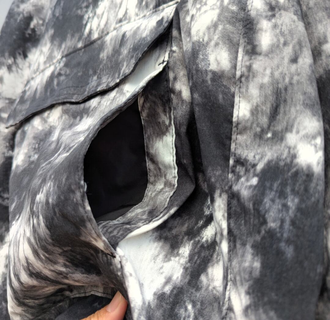 背面の左サイドシームポケットに収納可能(パッカブル)