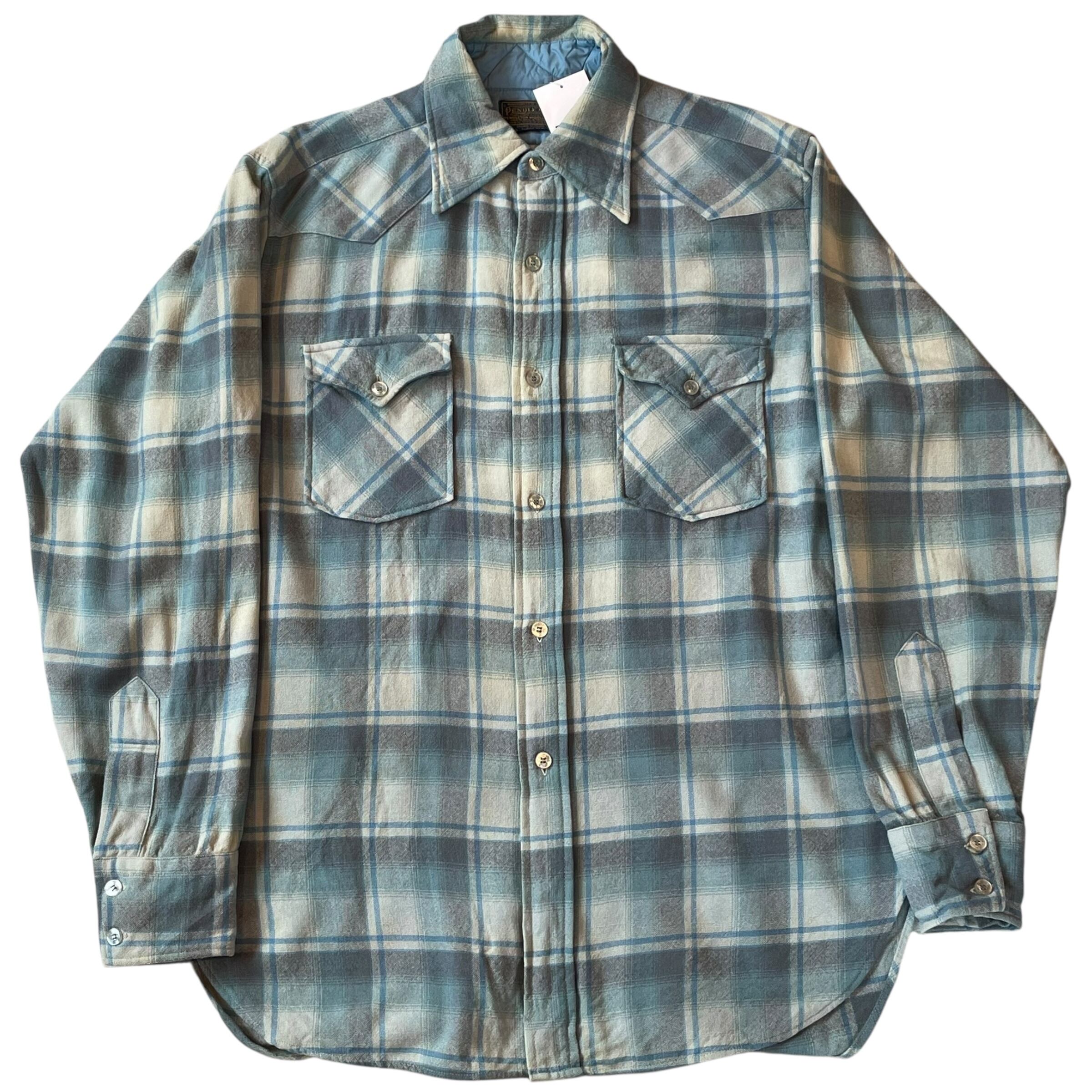 70s PENDLETON "blue × gray" wool western shirt