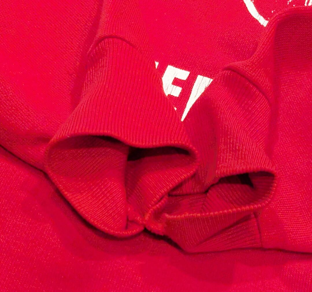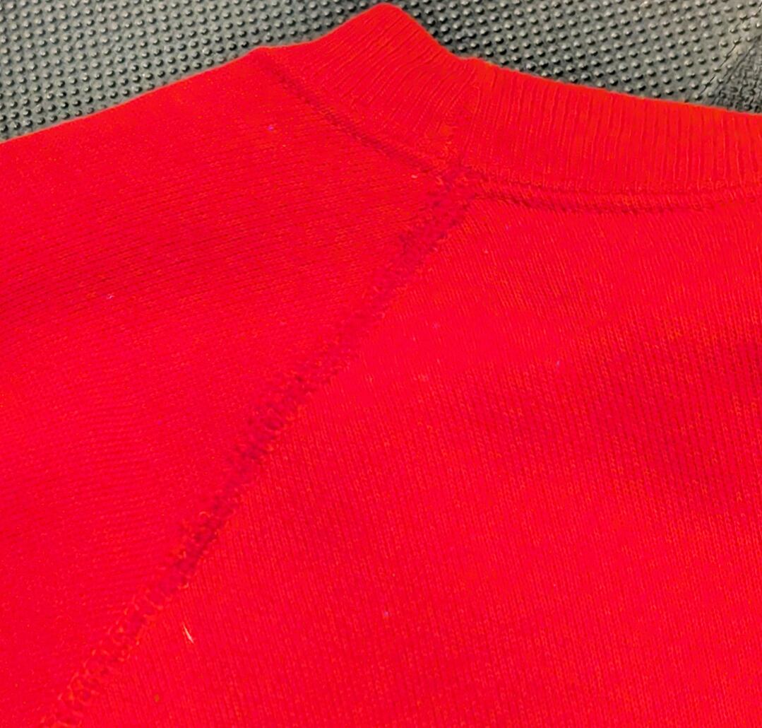 状態詳細:使用感、薄汚れ、やや褪色、背面ステッチズレ、裾リブ小傷、袖口ダメージ。
