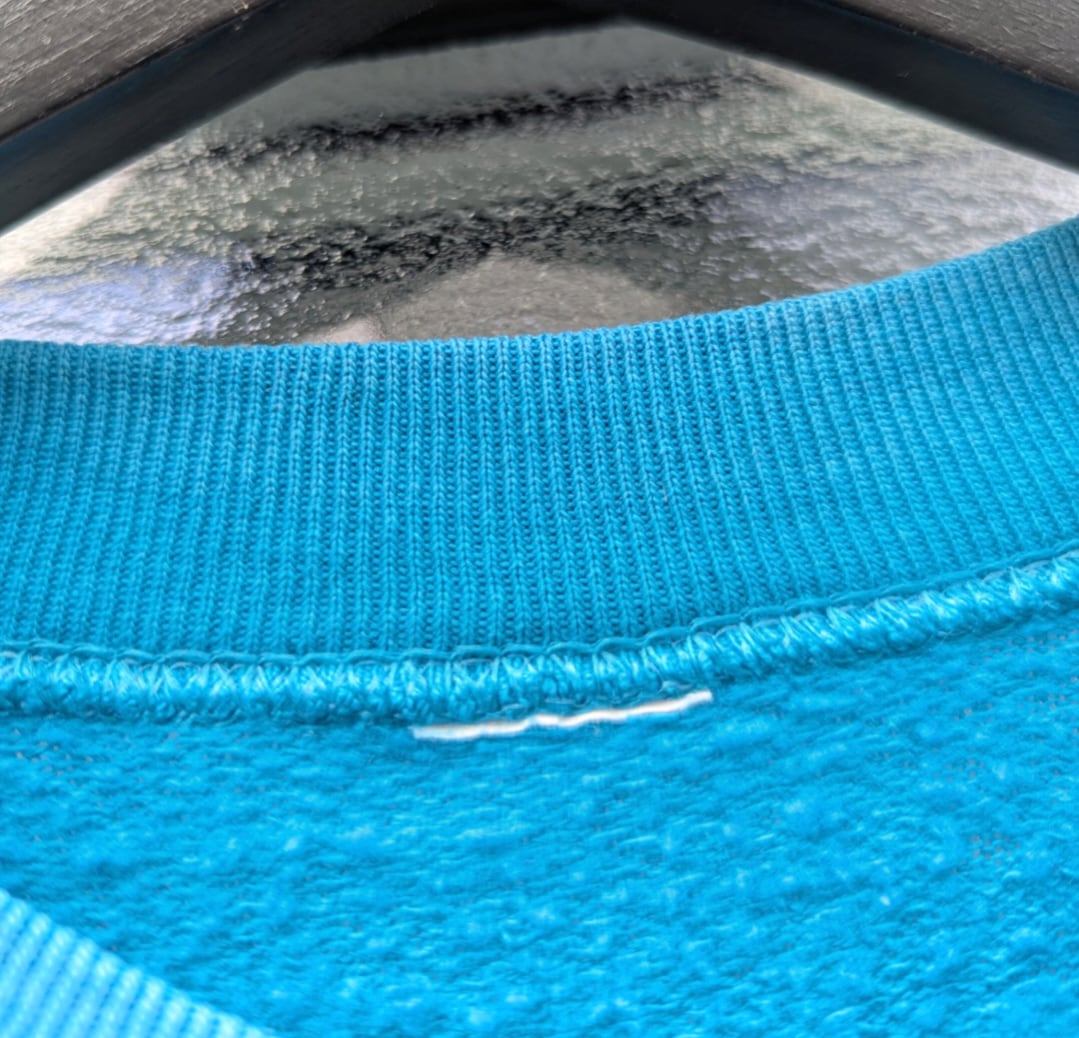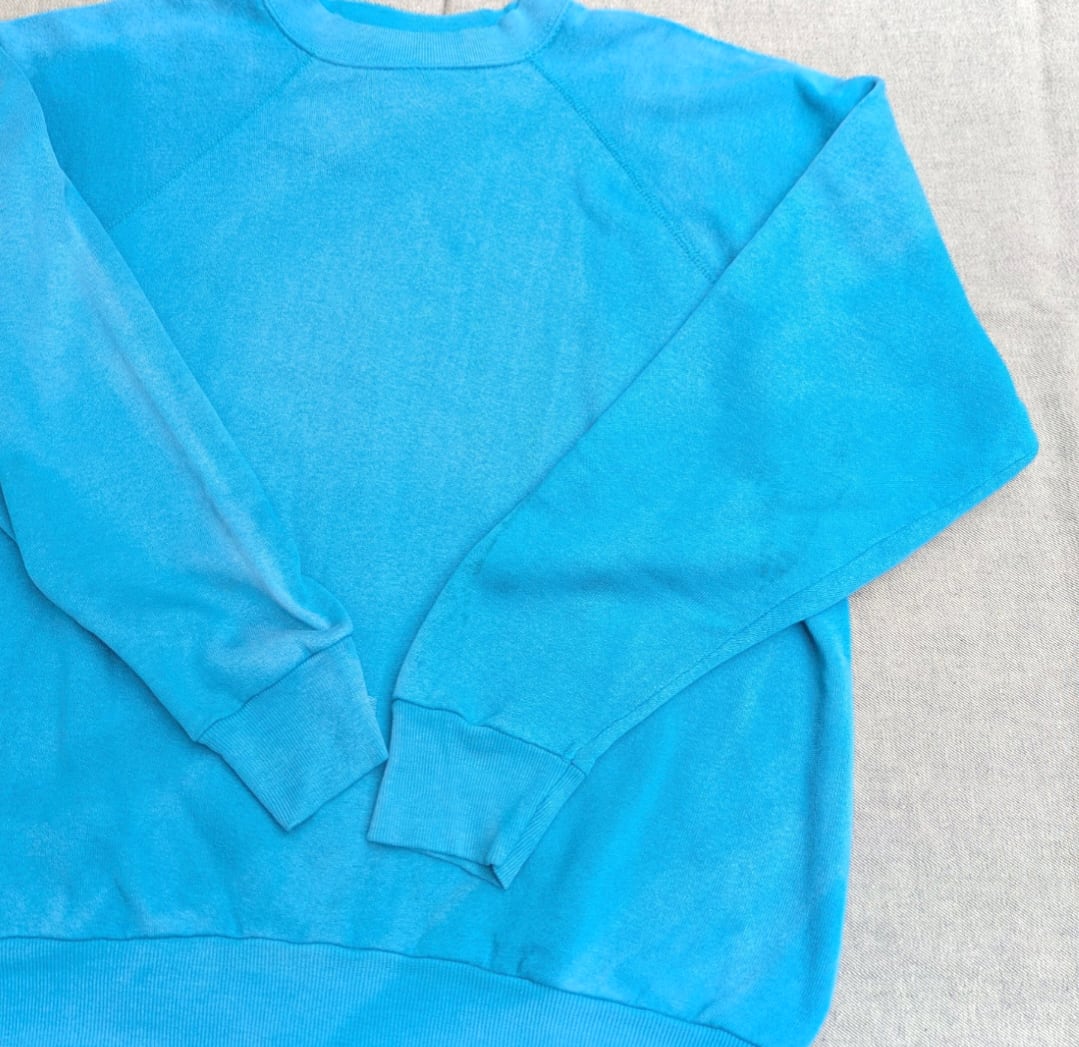 80s頃の無地ラグランスリーブでターコイズブルーのスエットです。