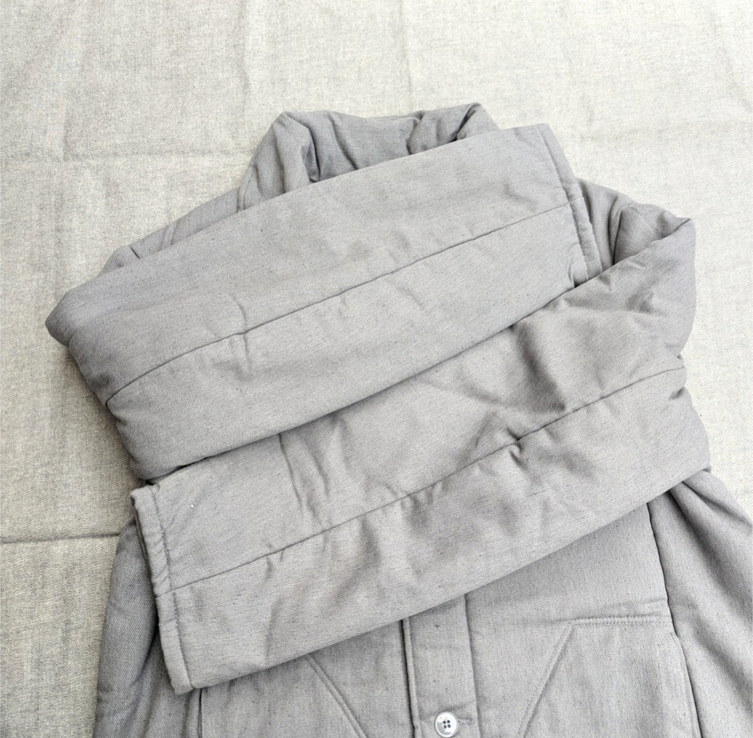 素材表記はありませんが、シェルは綿もしくは綿主体で、ライナーはポリエステルらしき化繊でしょうか。