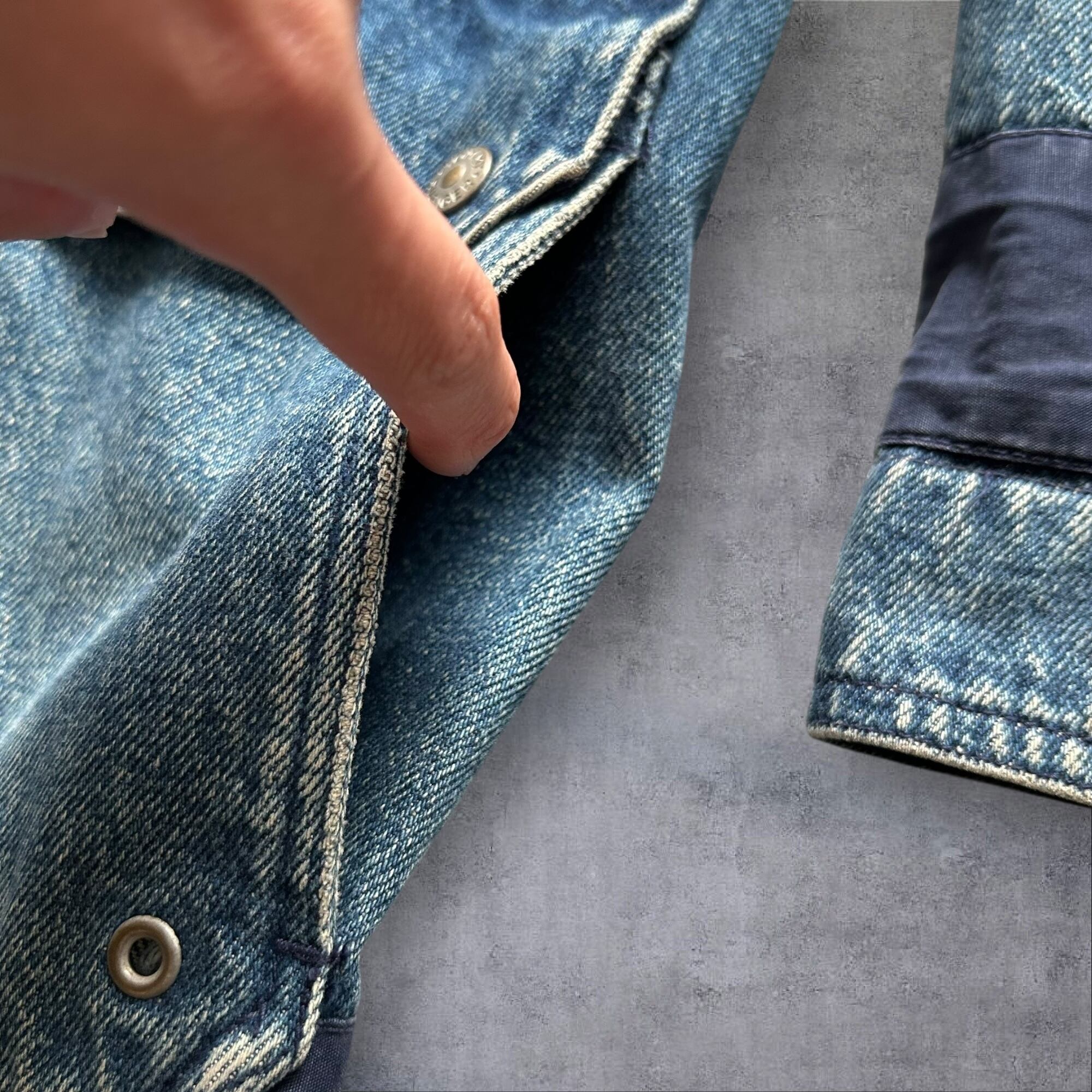 デニム特有の色ムラ、アタリあり(画像参照)