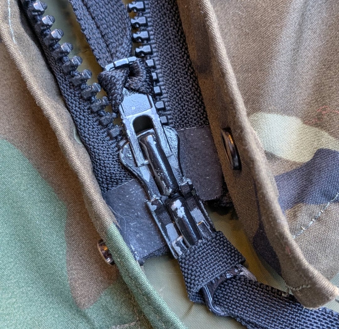 ジッパーはダブルジッパー、裏地の腰にアジャスター。