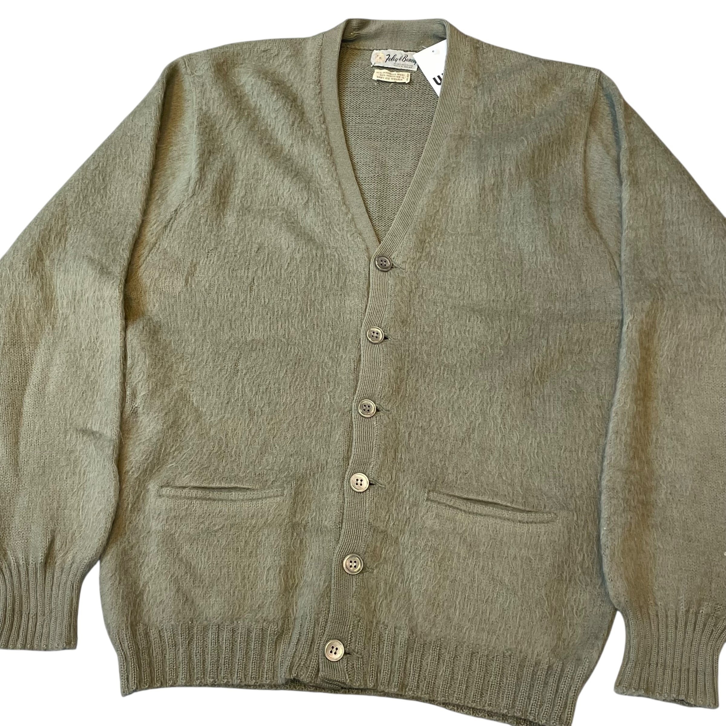 1960s Foley & Bonny "Sage green" Baby kid mohair cardigan