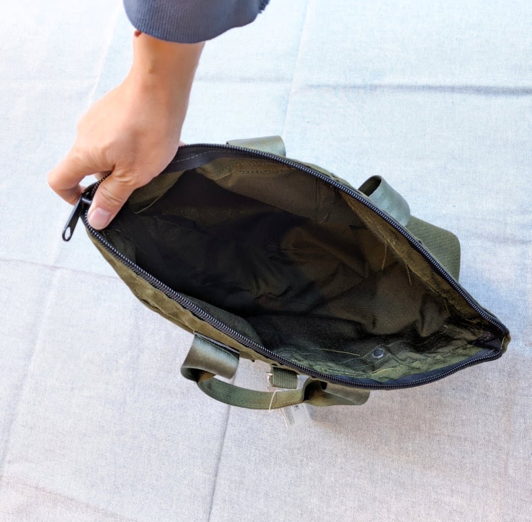 ジッパー開いてガバっと収納できます。