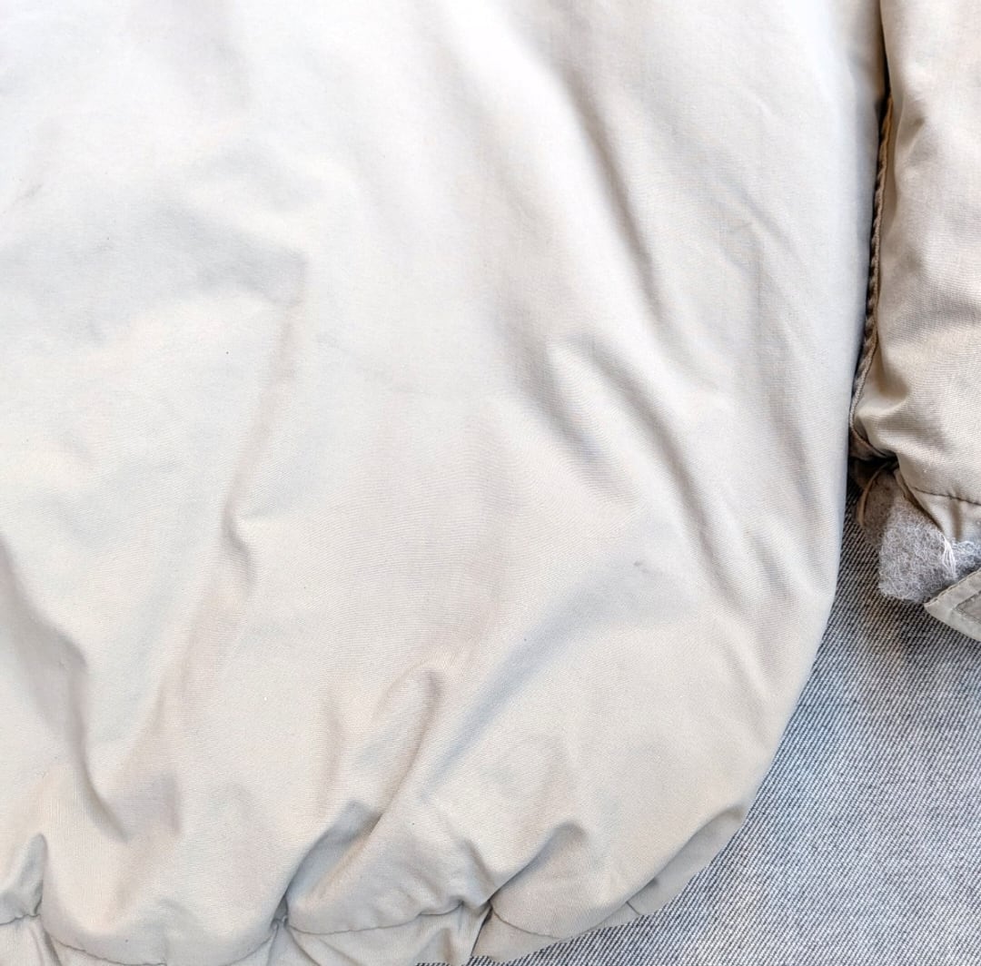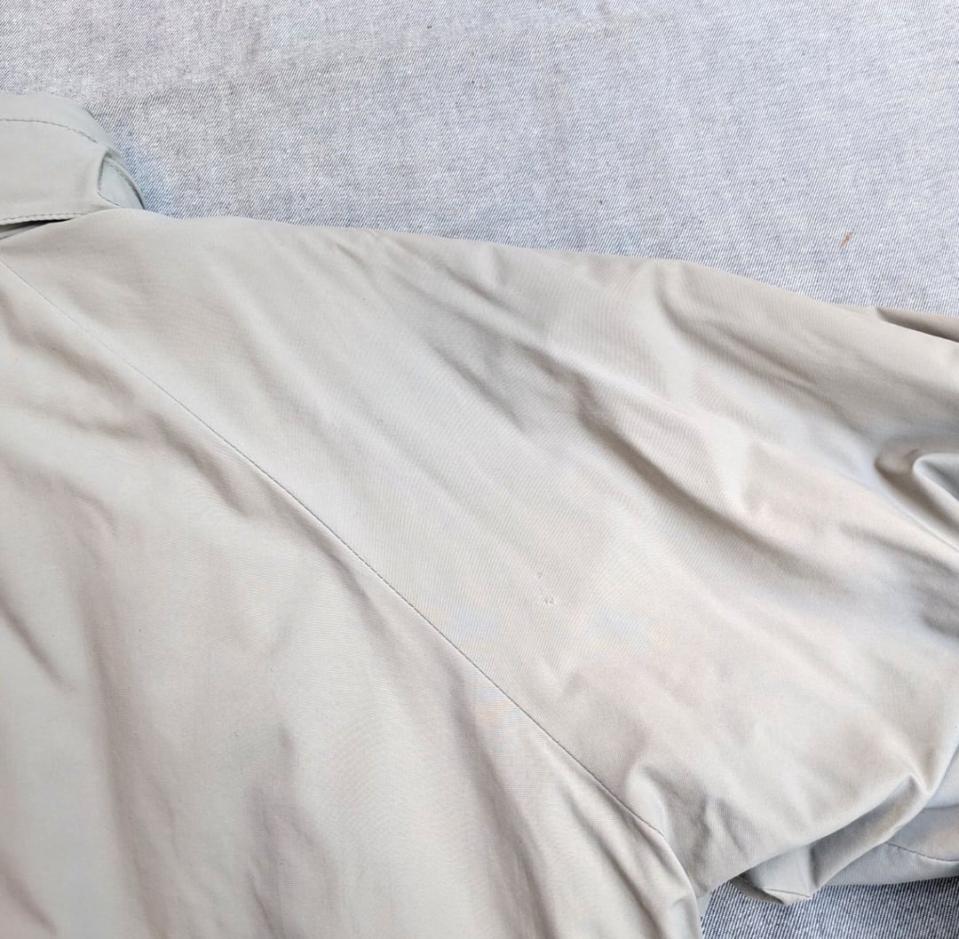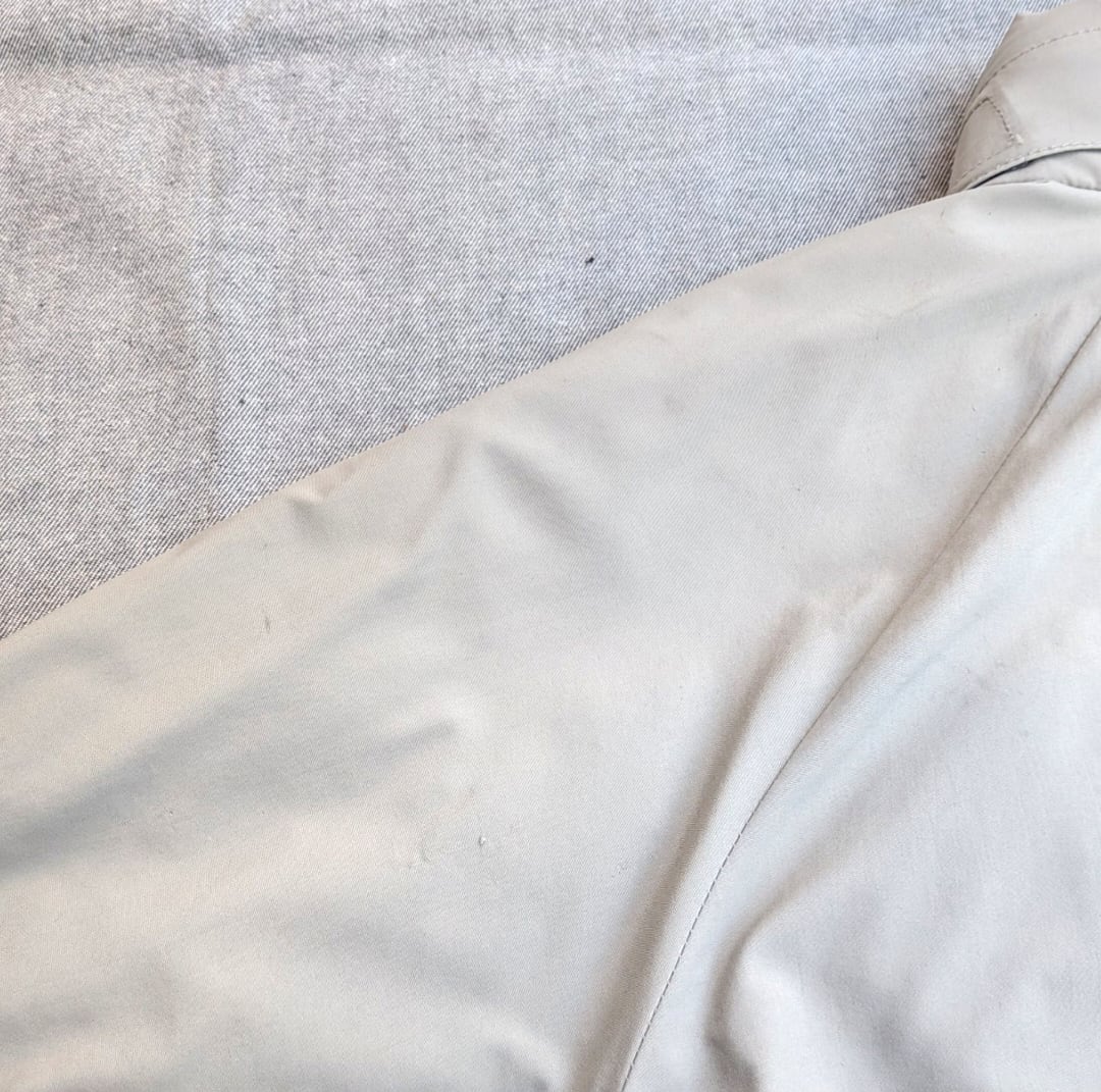 状態詳細: 使用感、擦れ、染み、汚れ、傷、ダメージ、破け、袖口リペア、テープの抜け。