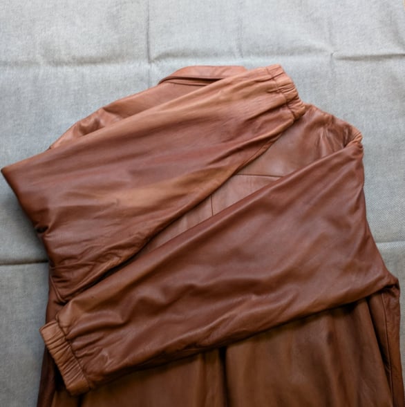 柔かみあるラムレザー仕様で、だらんと落ちるシルエットです。