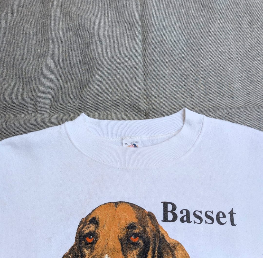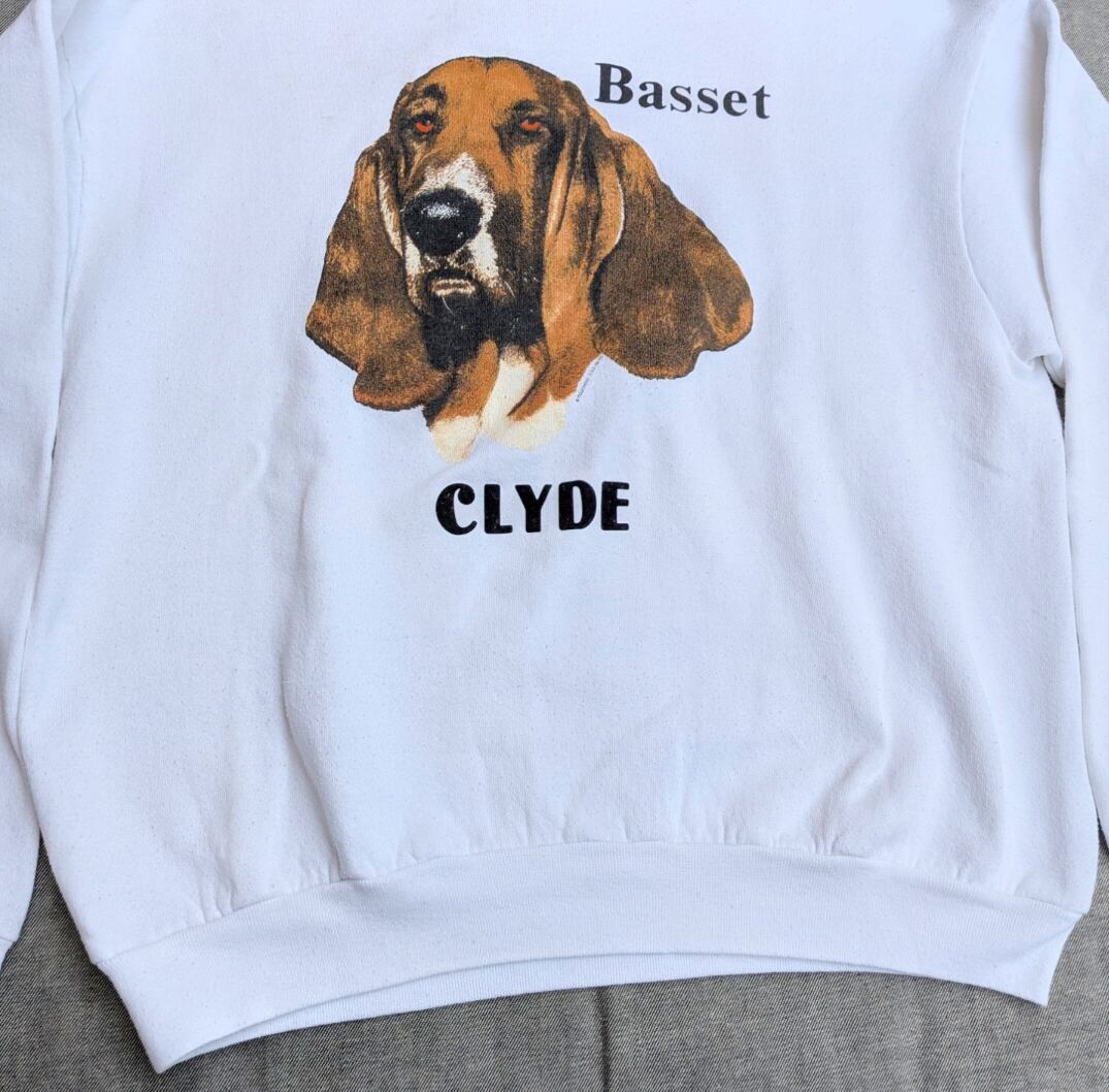 90s " basset " dog print sweat shirt 小岩店