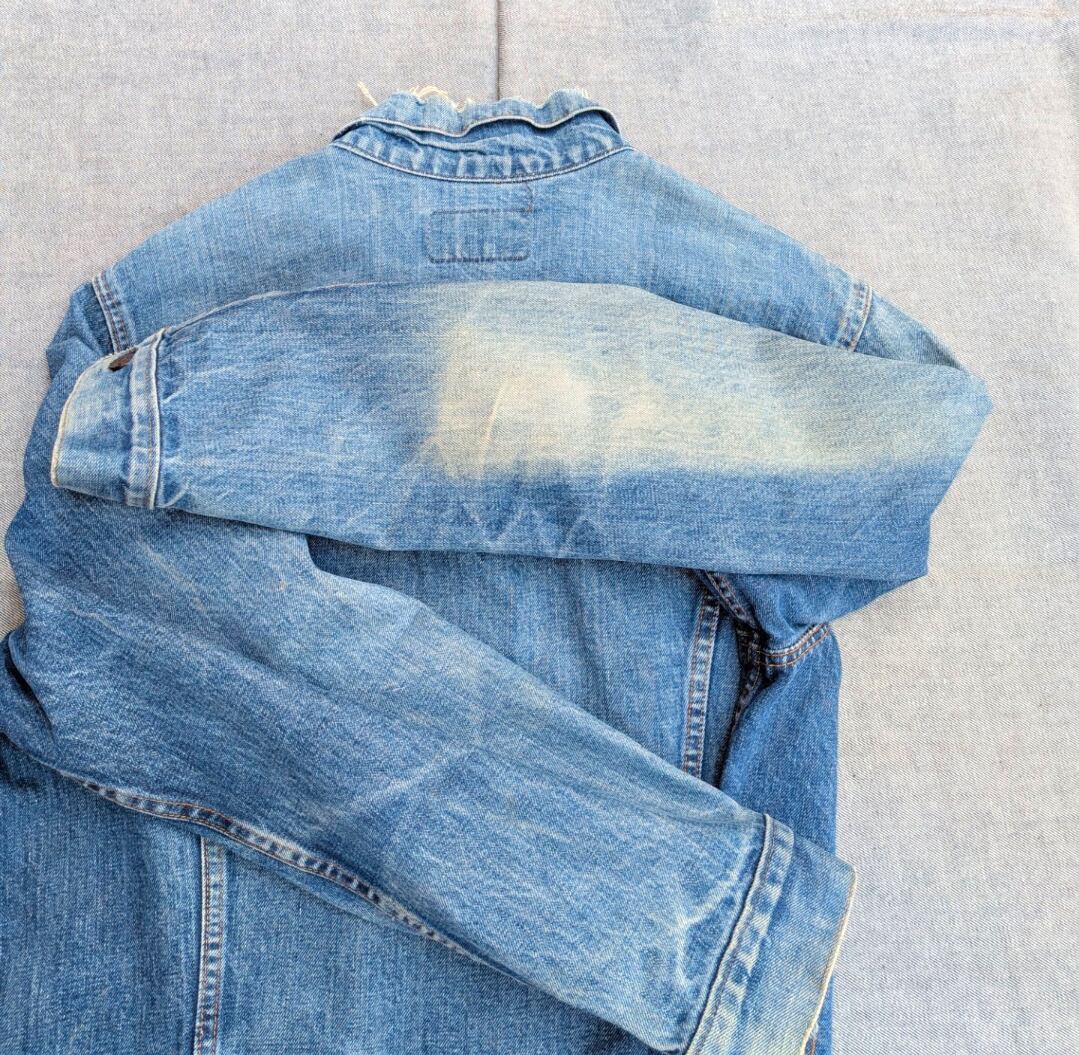 状態詳細:使用感、経年、破れ、汚れ、染み、ヤケ、アタリ、擦れ、ステッチ抜け、多少の糸のホツレ、袖口、襟周りにダメージ、タブ欠損。