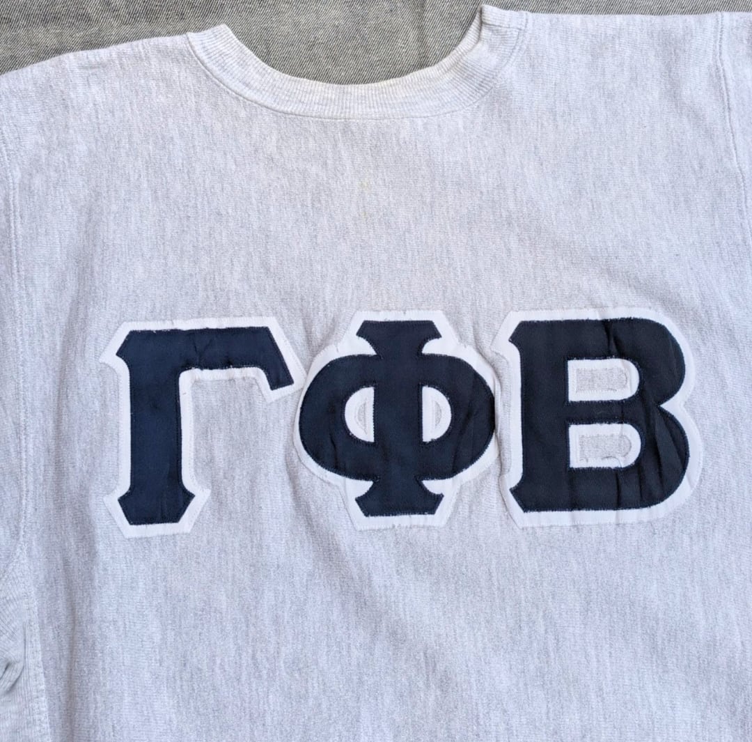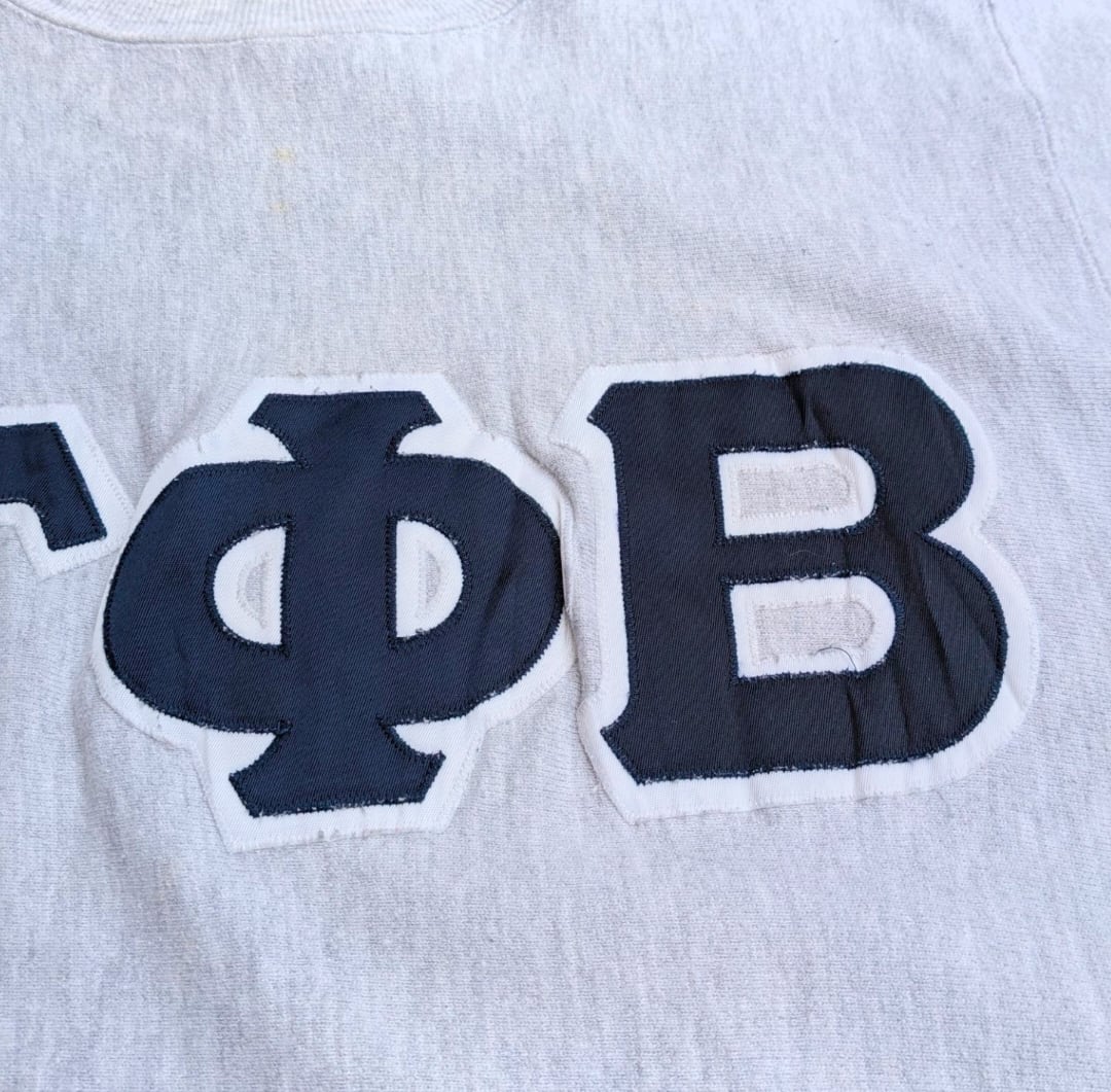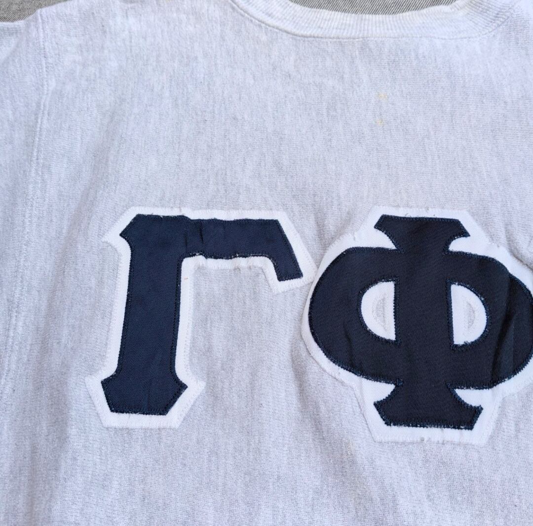 90s champion r/w ネイビーギリシア文字 パッチ sweat 小岩店