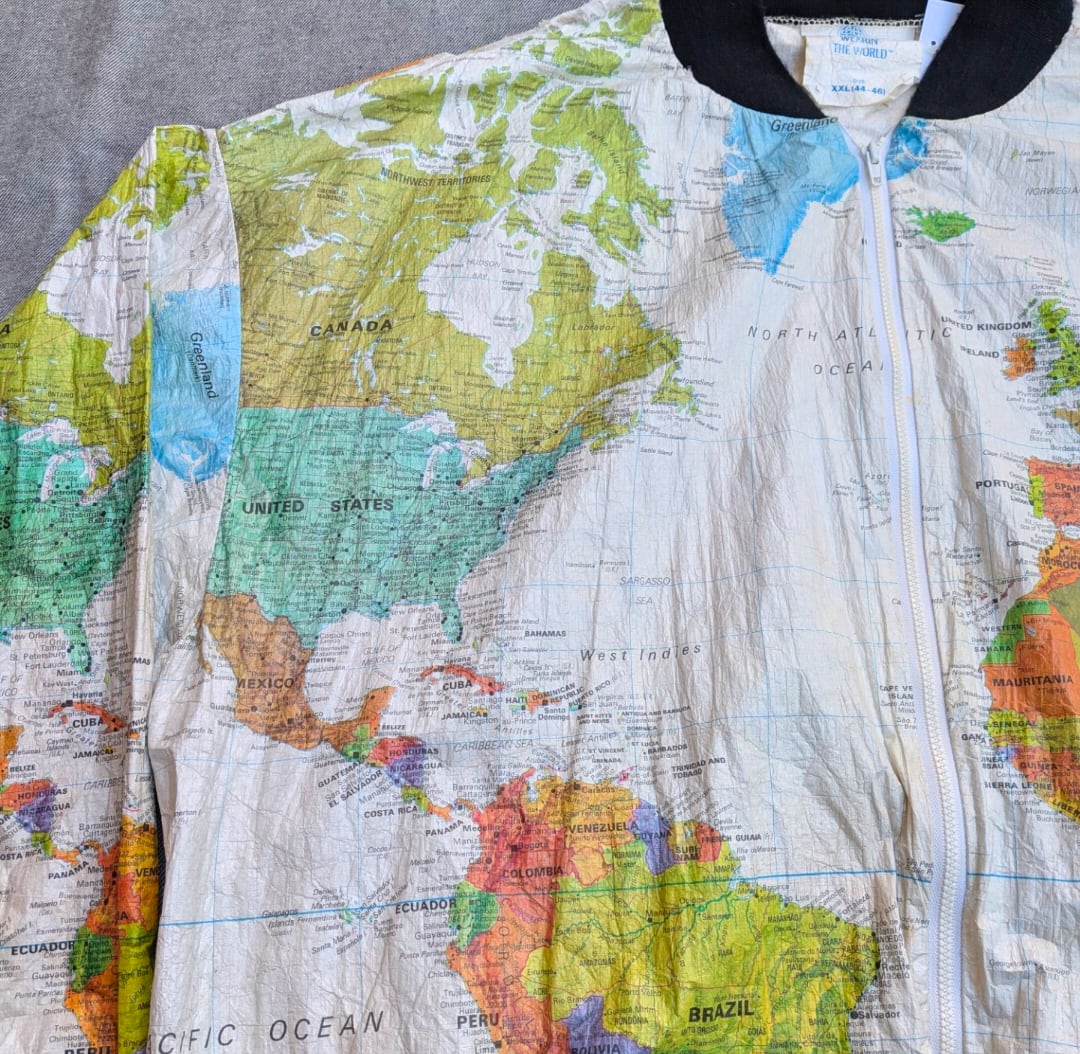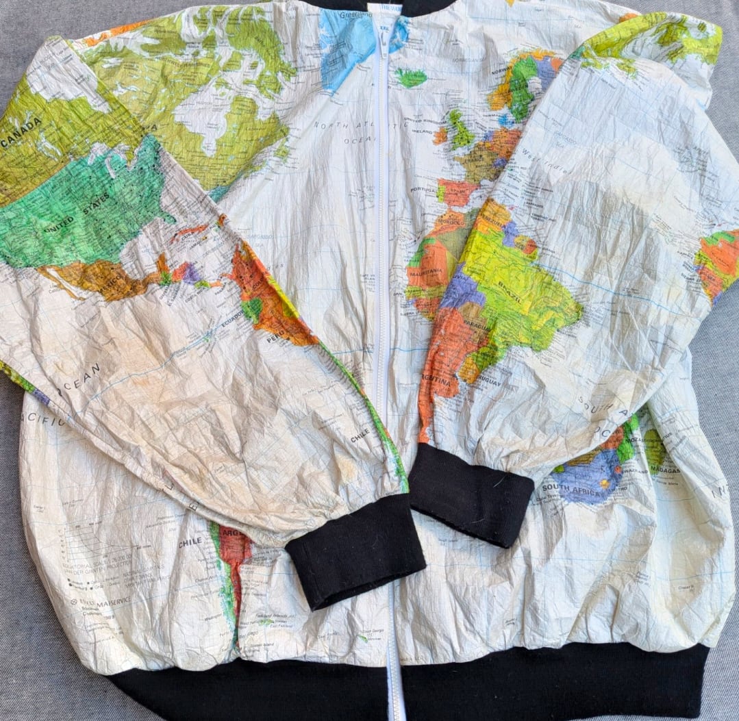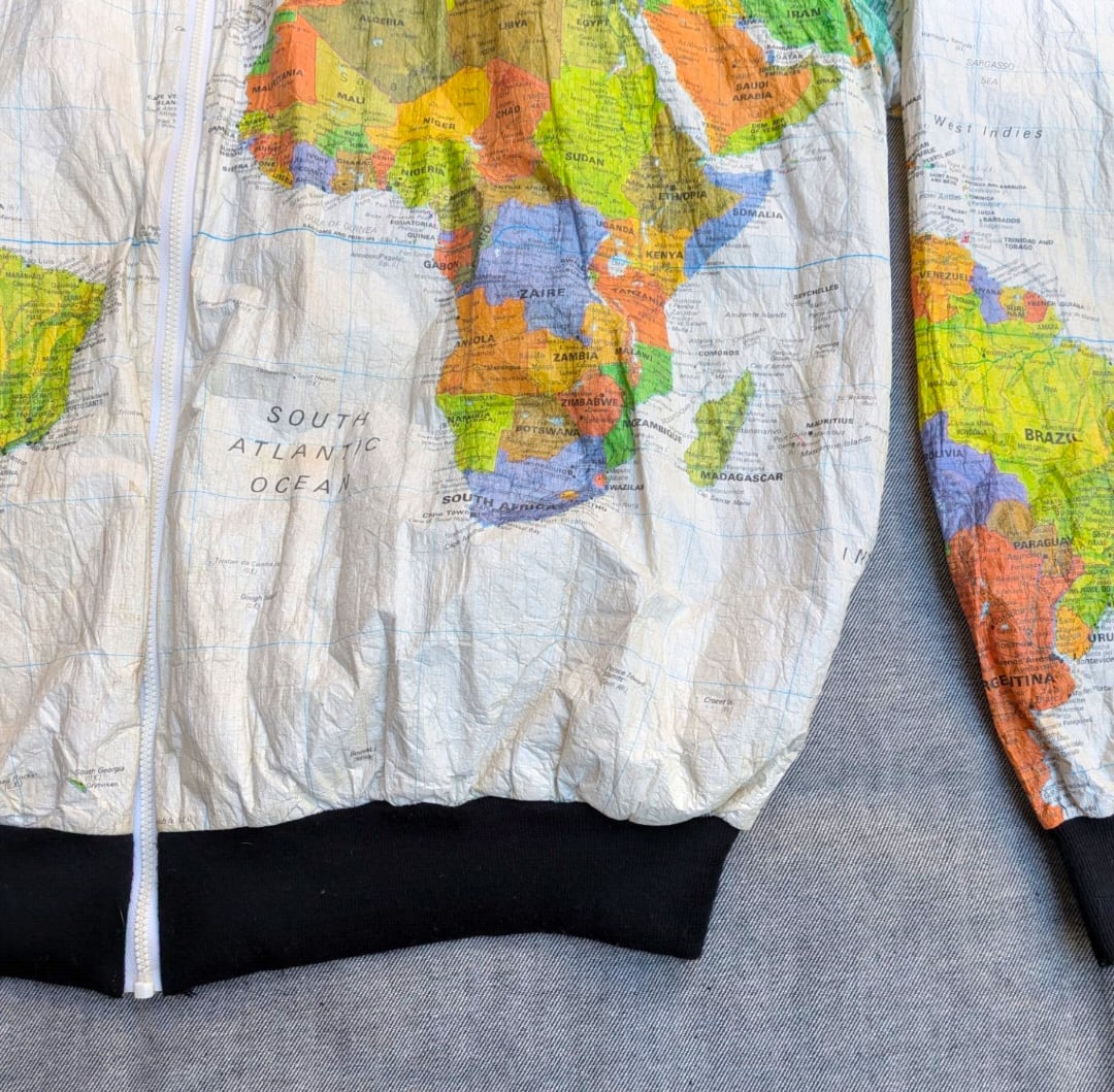 ワールドマップがプリントされたペーパージャケット