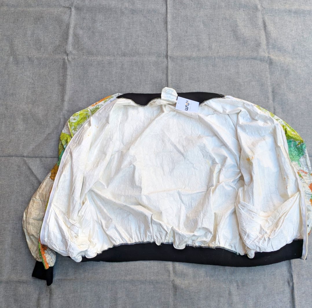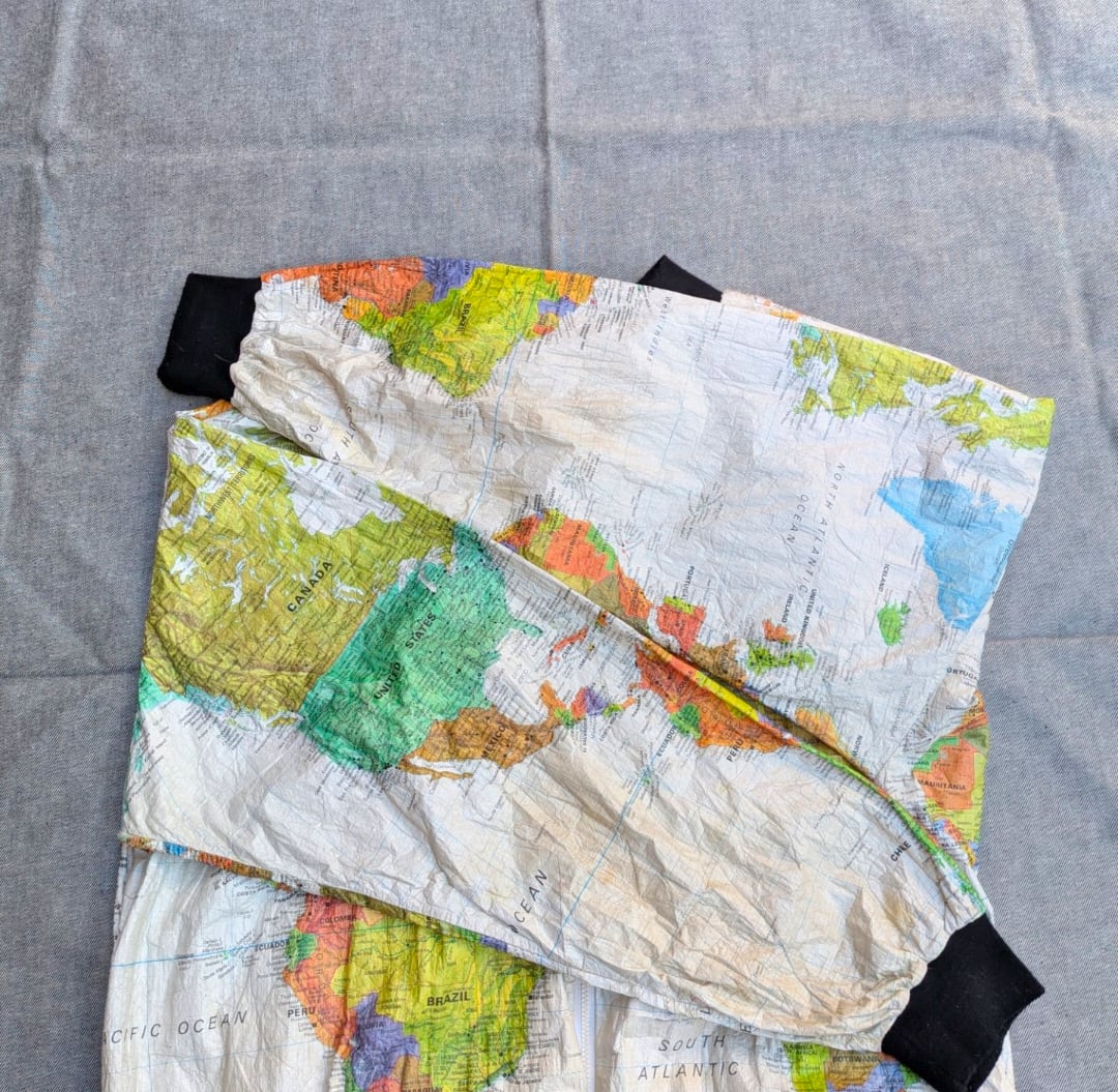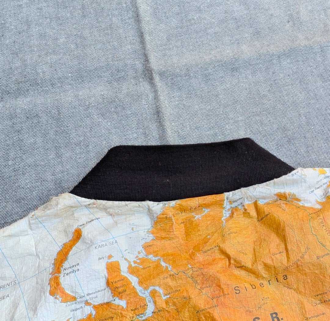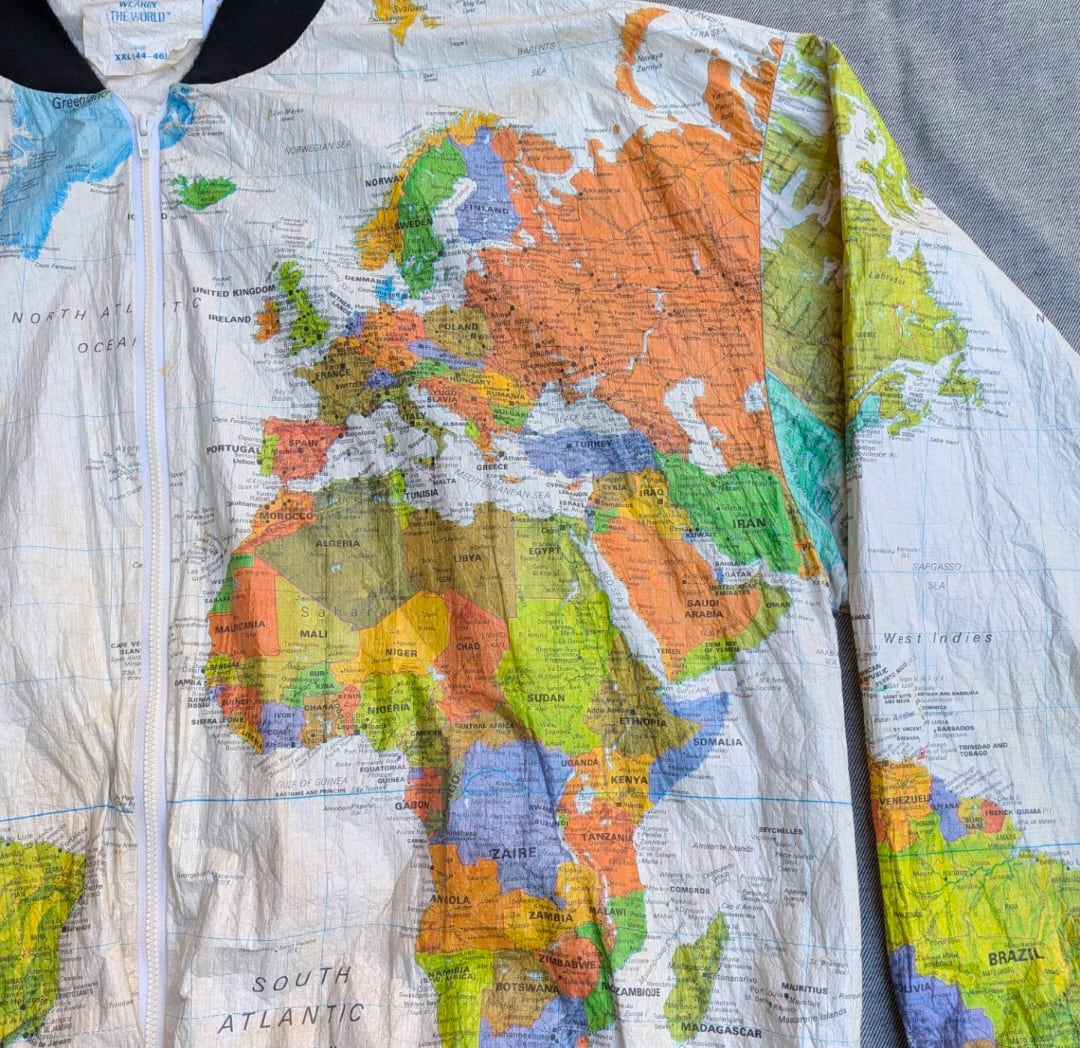 ワールドマップがプリントされたペーパージャケット