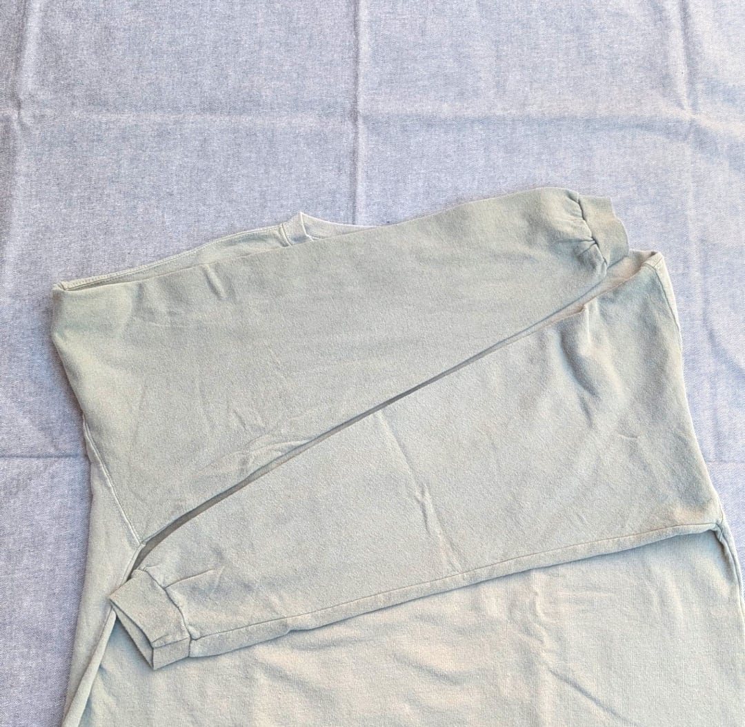 刺繍ロゴで、薄グリーンのピスタチオカラーの割りと薄手のスエットです。