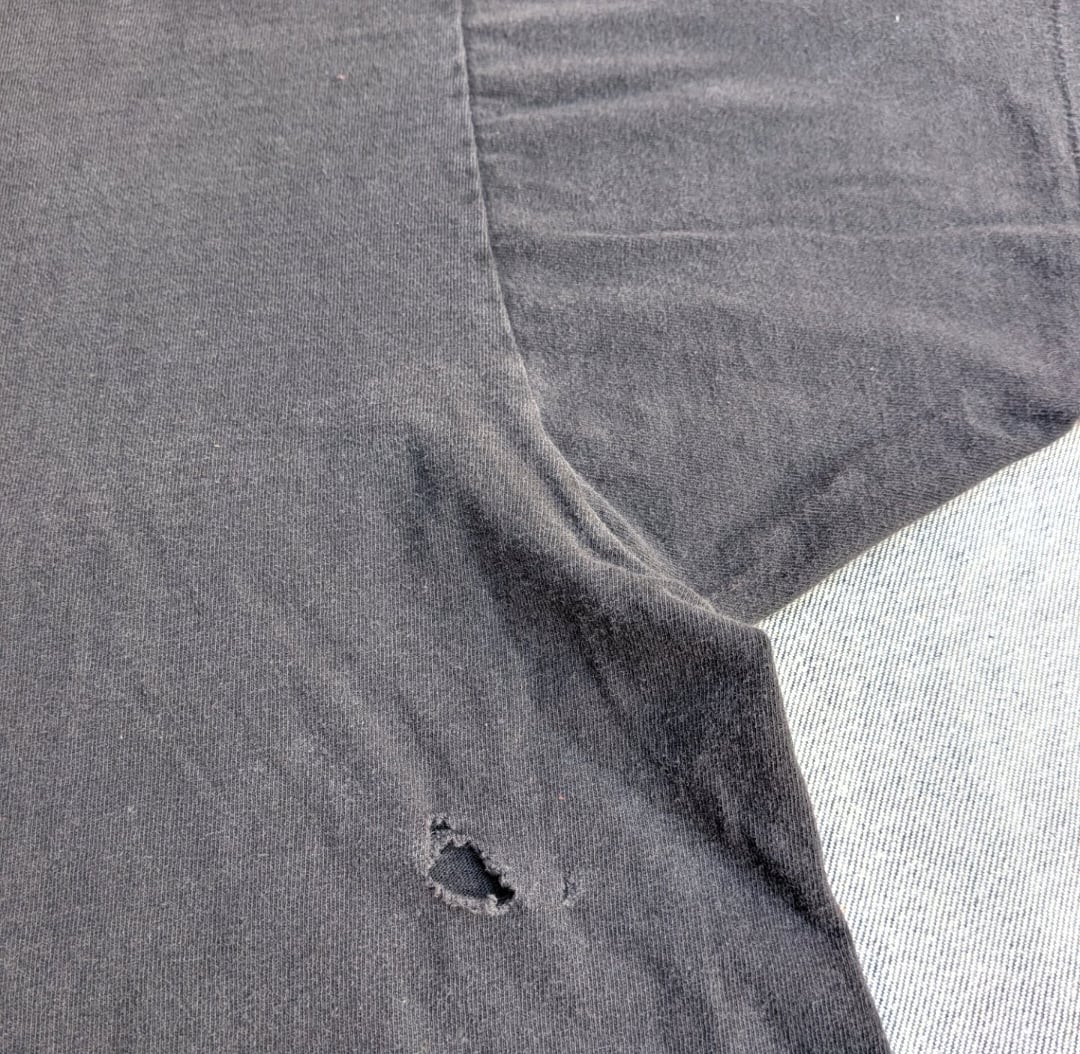 状態詳細:使用感、褪色、穴、薄汚れ、プリント擦れ。