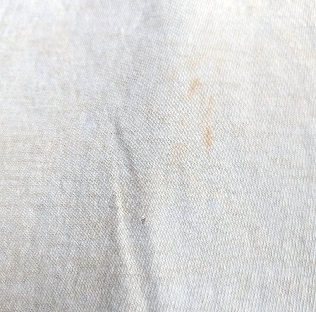 状態詳細:使用感、汚れ、染み、ピンホール、茶色く染めなのか、ヤケなのか雰囲気ある1枚...裏地の白さと対比できます。