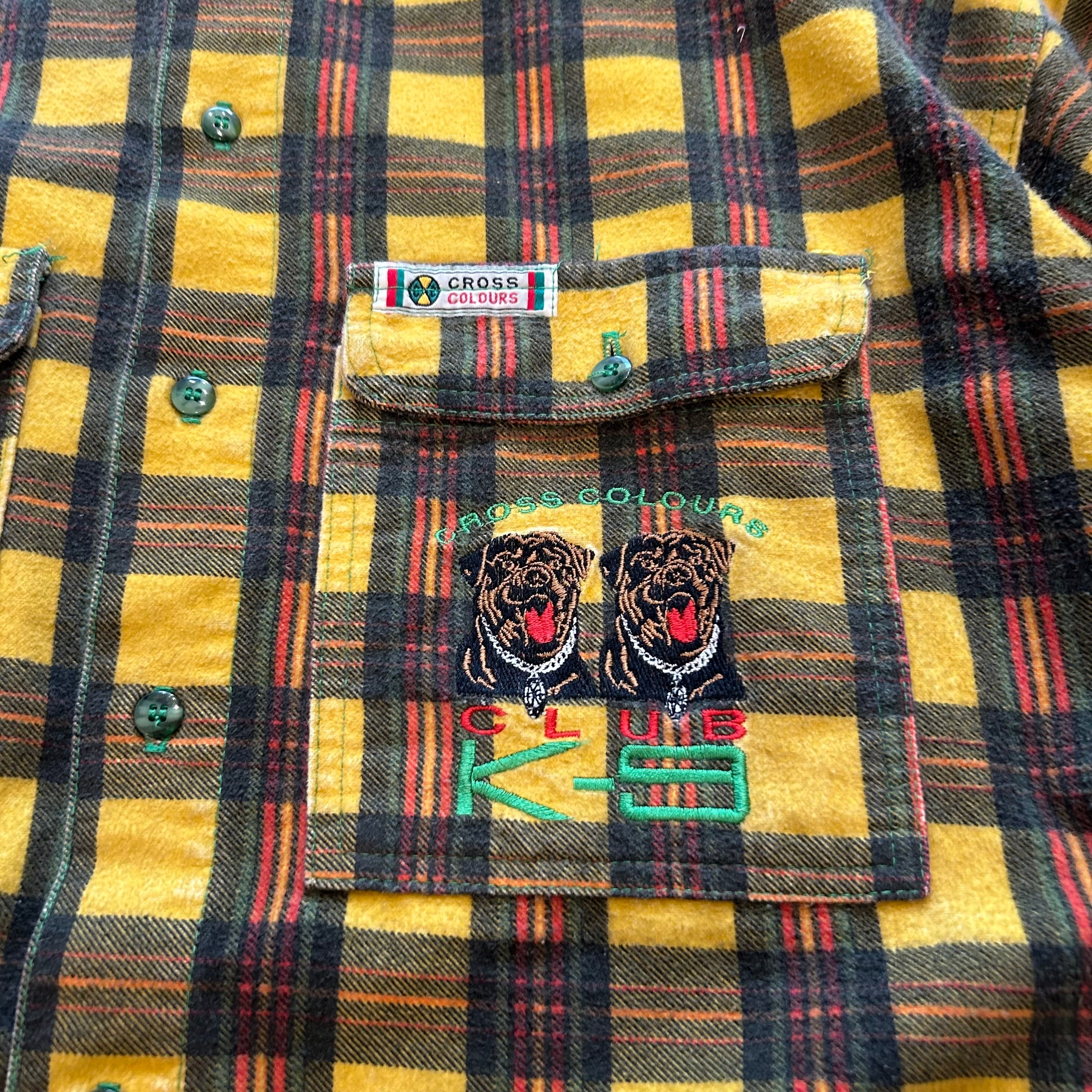 90s CROSS COLOURS no collar flannel shirt【高円寺店】