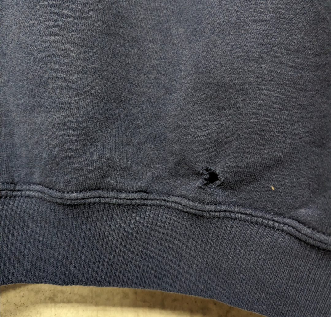 状態詳細:使用感、褪色、擦れ、汚れ、背面の裾にダメージ穴あり。