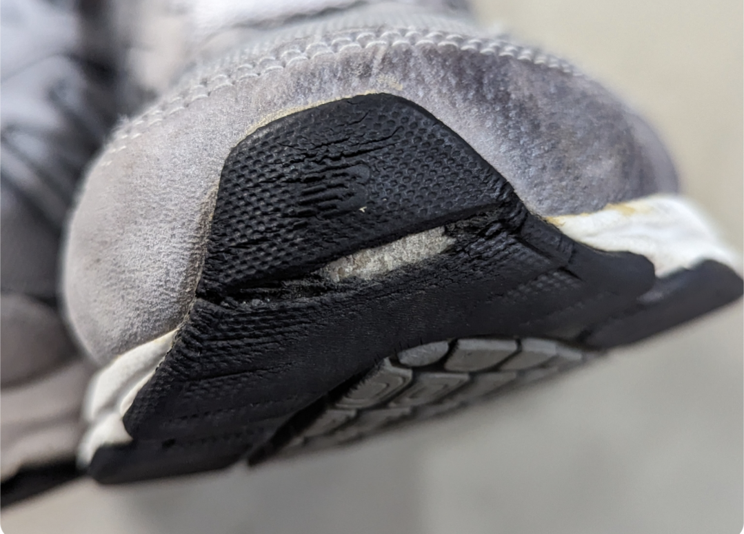 フロントのトウ部分のリフレクターが両足共に欠けています。