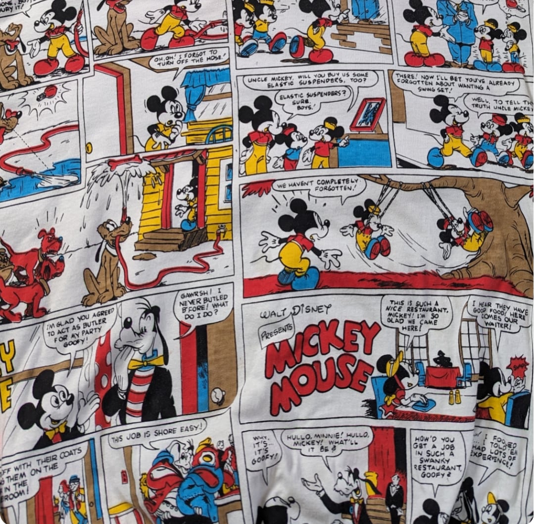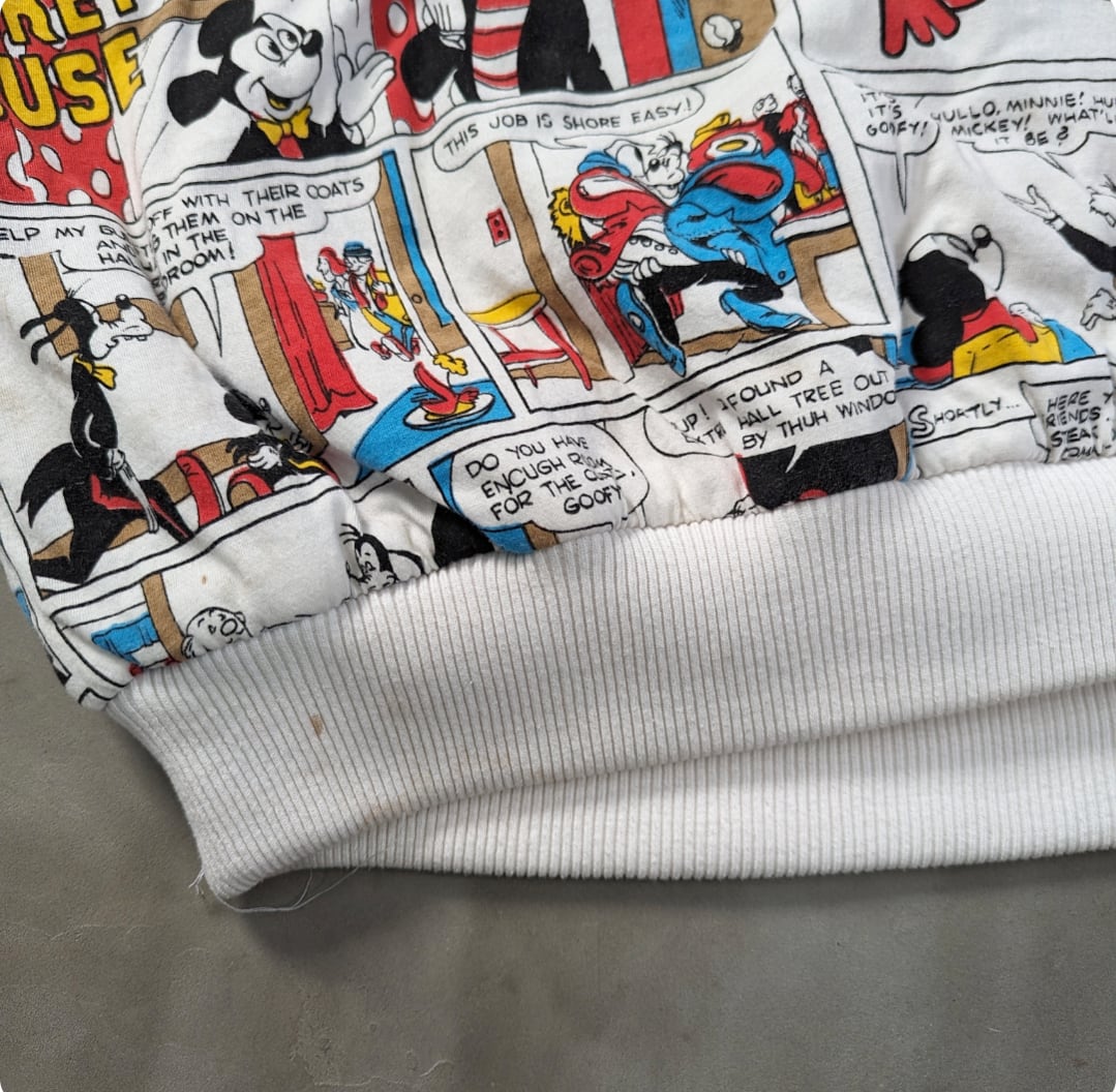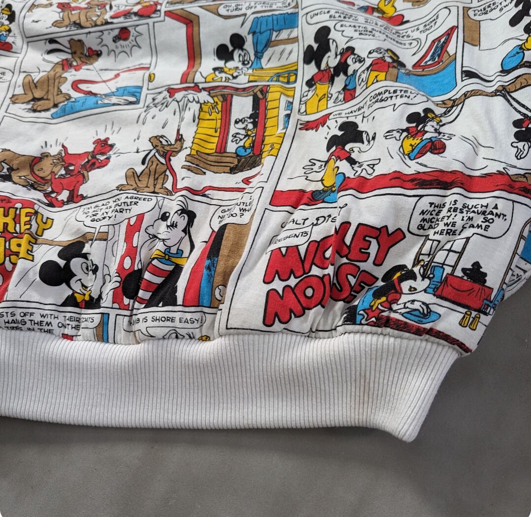 80s mickey mouse reversible comic over print sweat shirt 小岩店