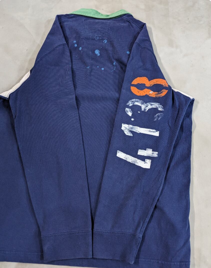 右袖にステンシルペンキプリント、