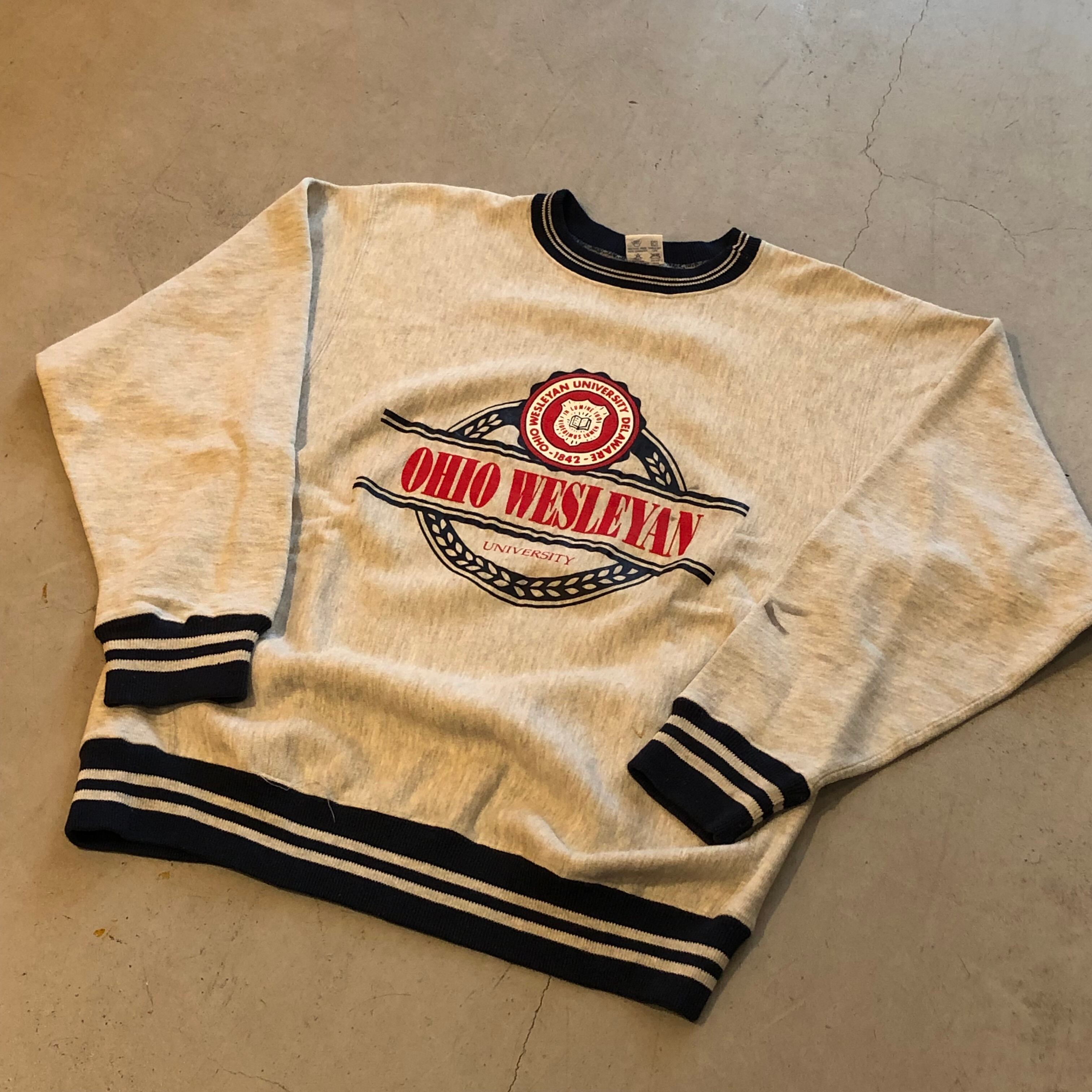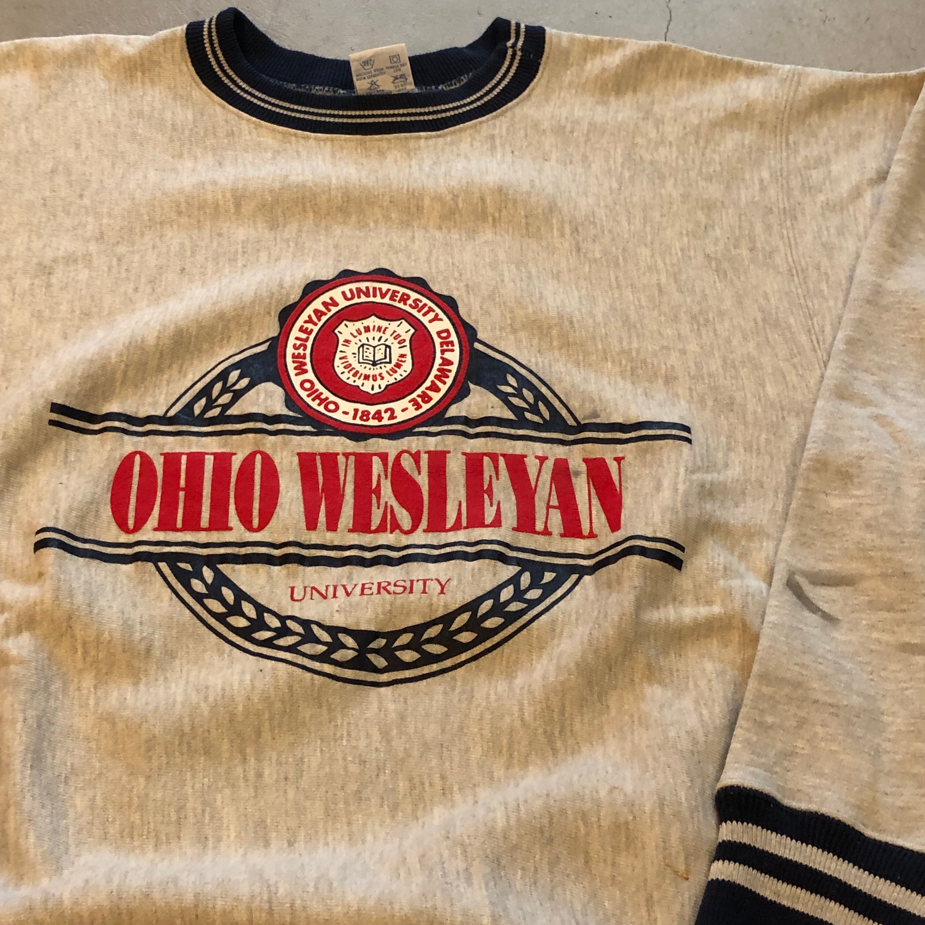 90s champion “OHIO WESLEYAN” ribline R/W sweat【高円寺店】